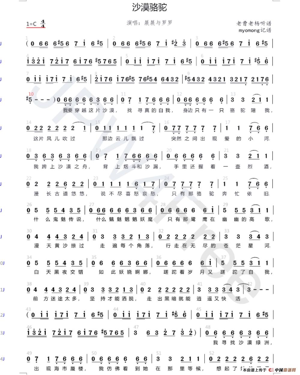 提示:在曲谱图片上单击右键,选择“图片另存为...”即可将曲谱保存到您的电脑中,打印时候可将图片插入到WORD中,调整合适大小打印即可。