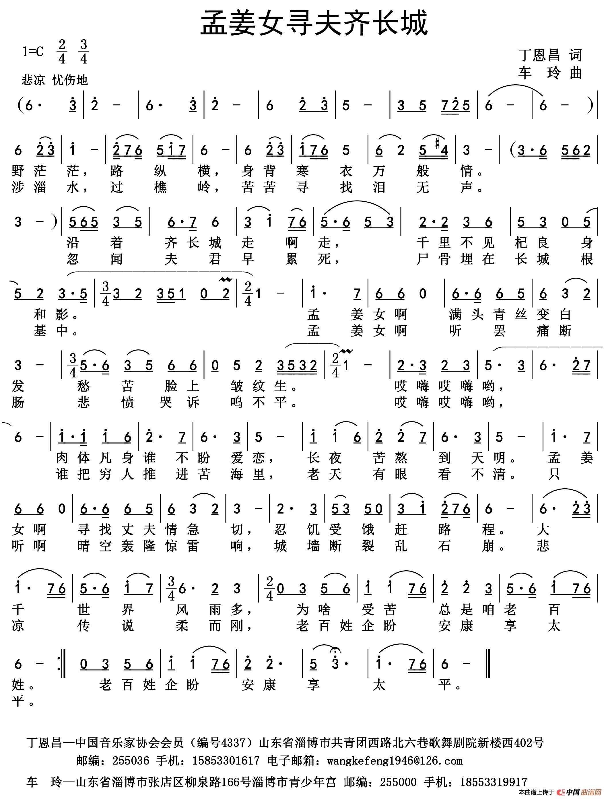 孟姜女寻夫齐长城(修改版)(丁恩昌词车玲曲)