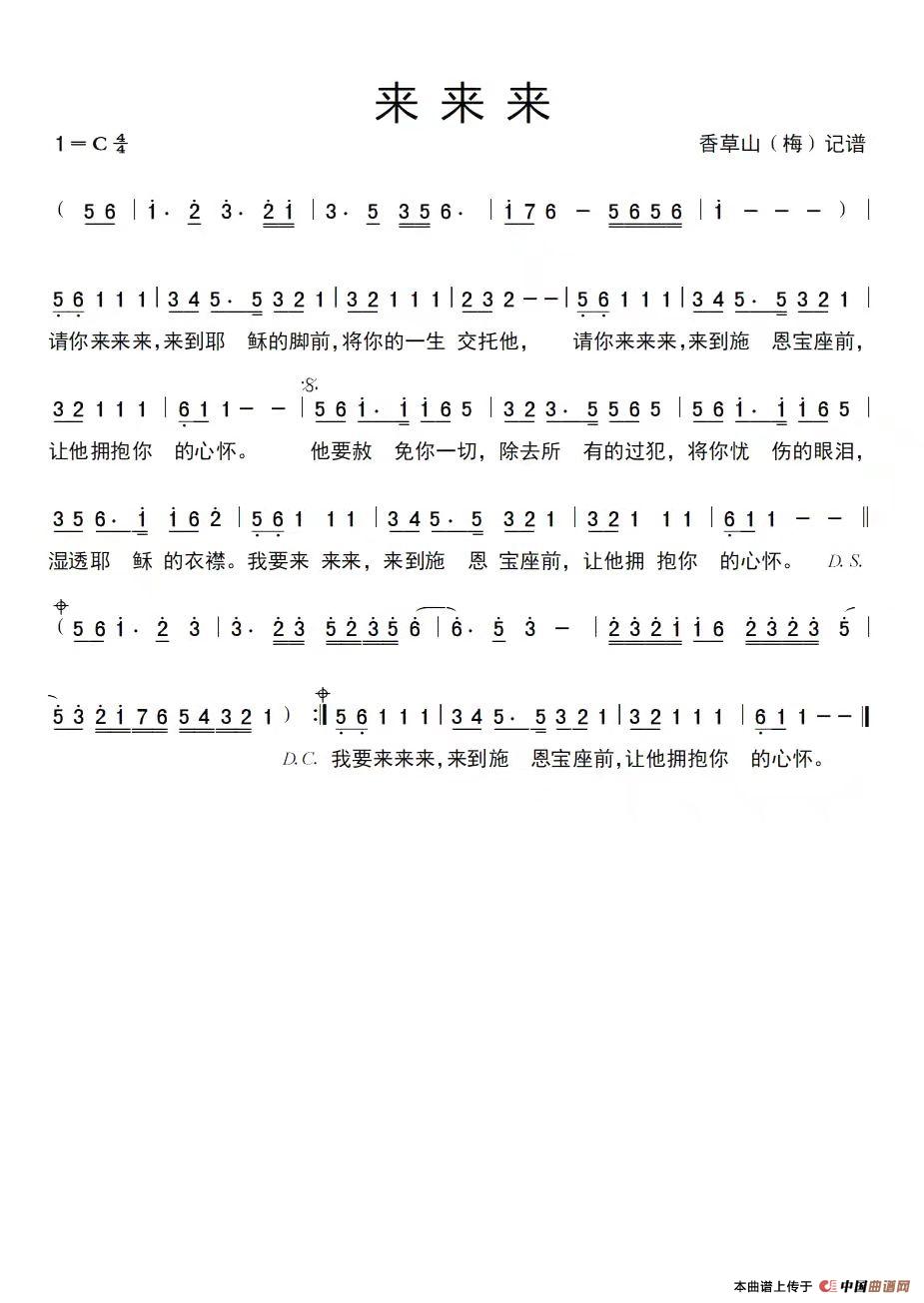 关于《来来来》曲谱的评论