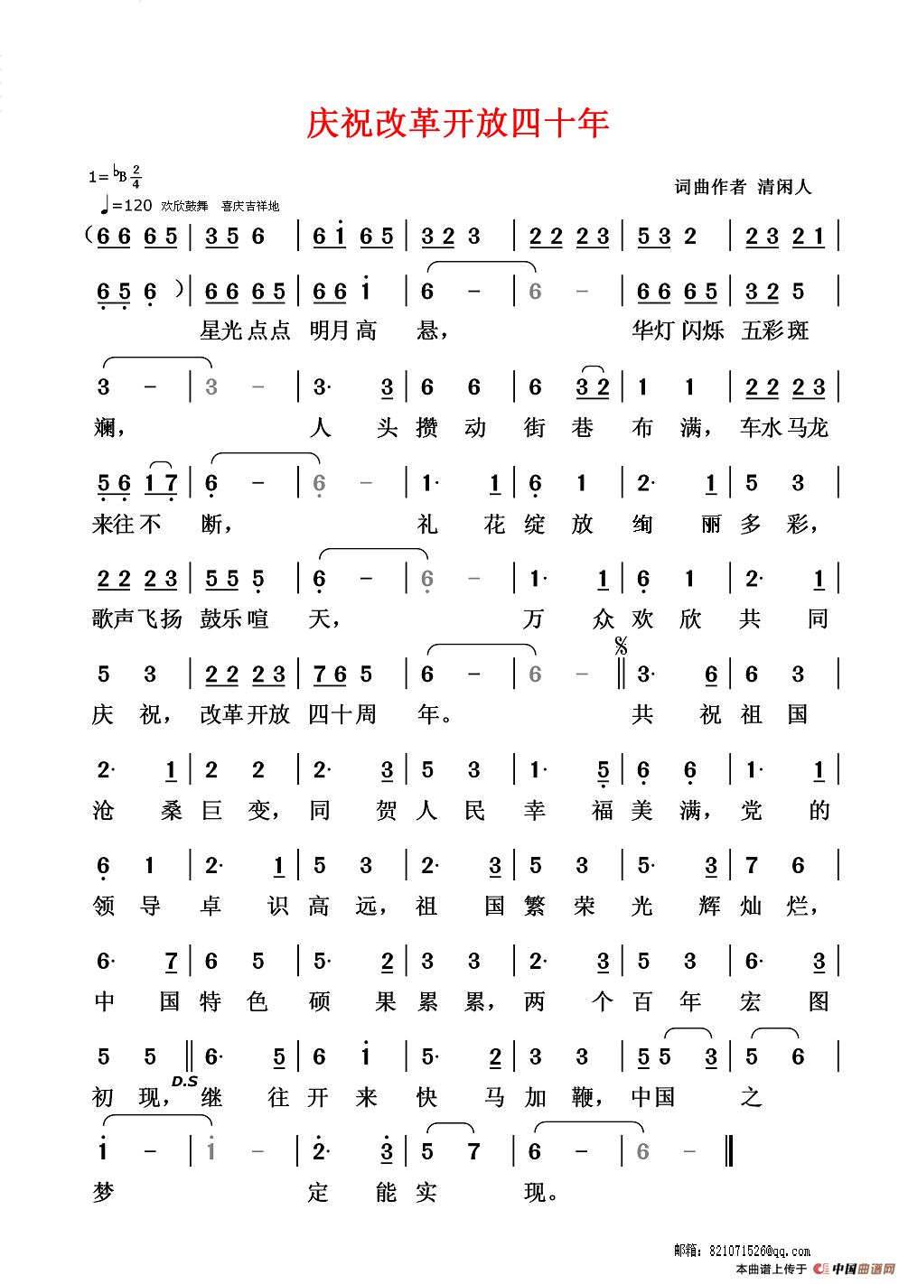 关于《庆祝改革开放四十年》曲谱的评论