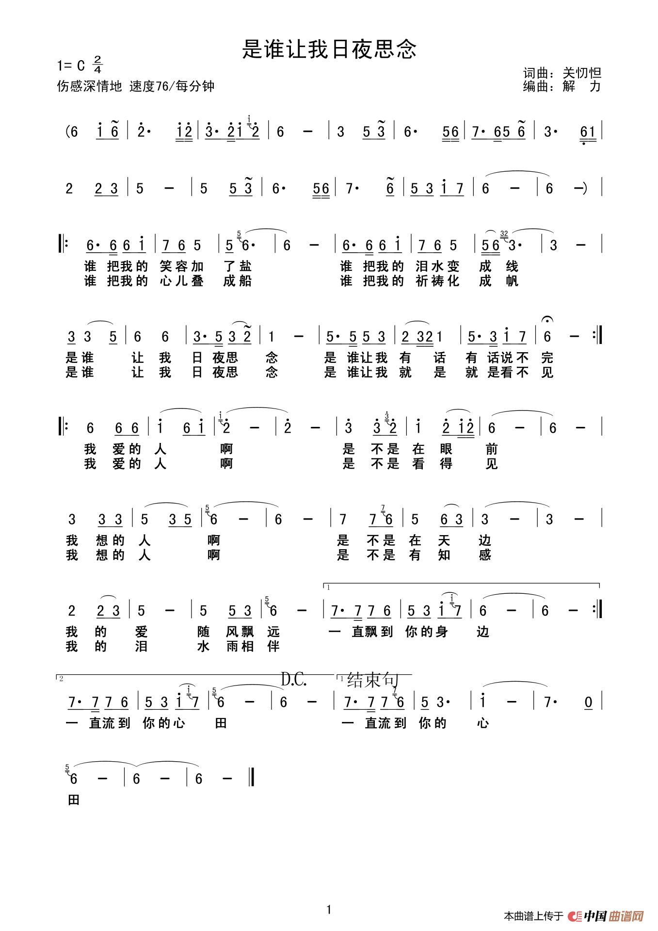 关于《是谁让我日夜思念》曲谱的评论