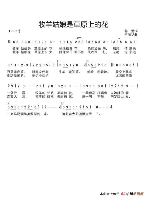 关于《牧羊姑娘是草原上的花》曲谱的评论