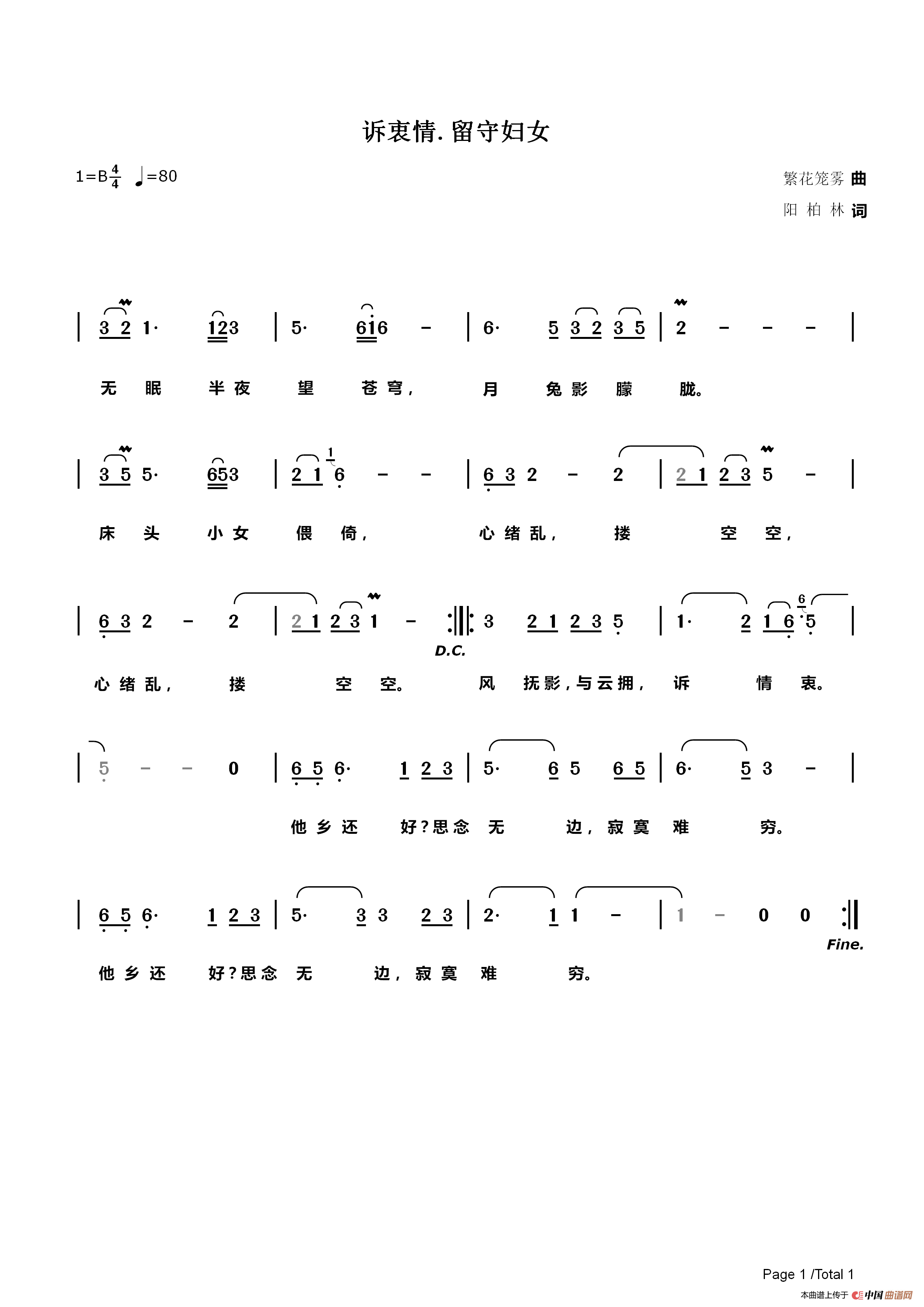 关于《诉衷情 留守妇女》曲谱的评论
