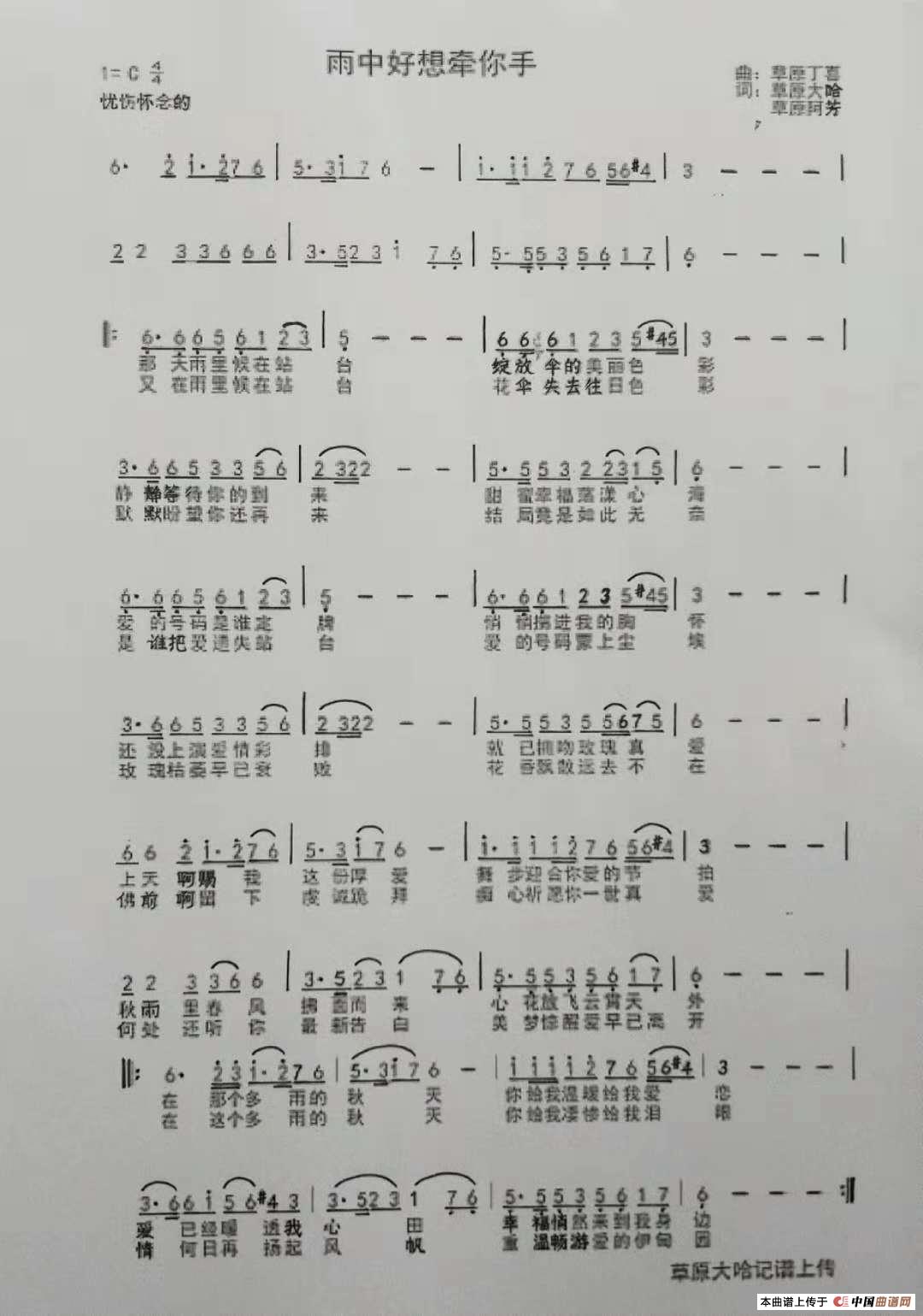 《雨中好想牵你手》(伤情情歌)作曲:草原丁喜 作词:草原大哈/草原阿芳