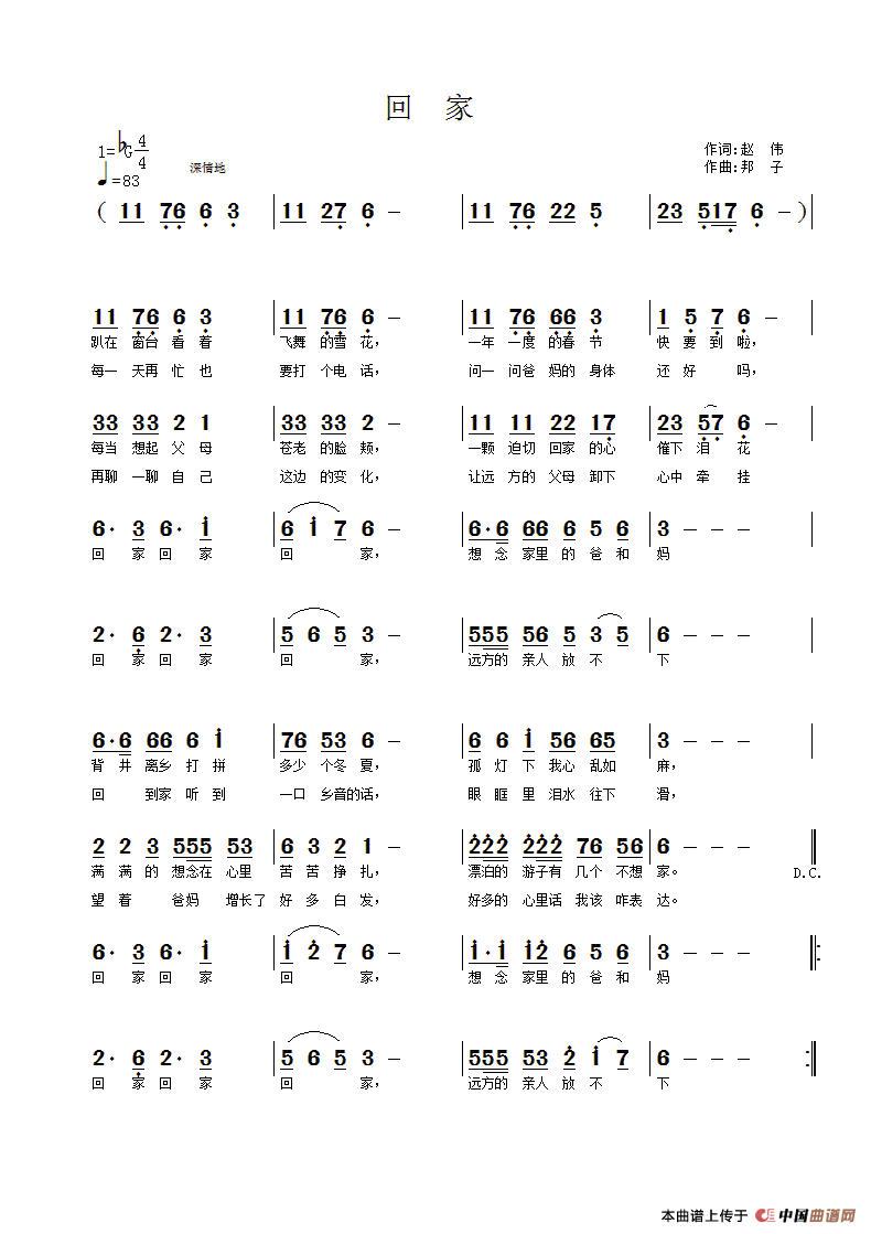 关于《回家》曲谱的评论