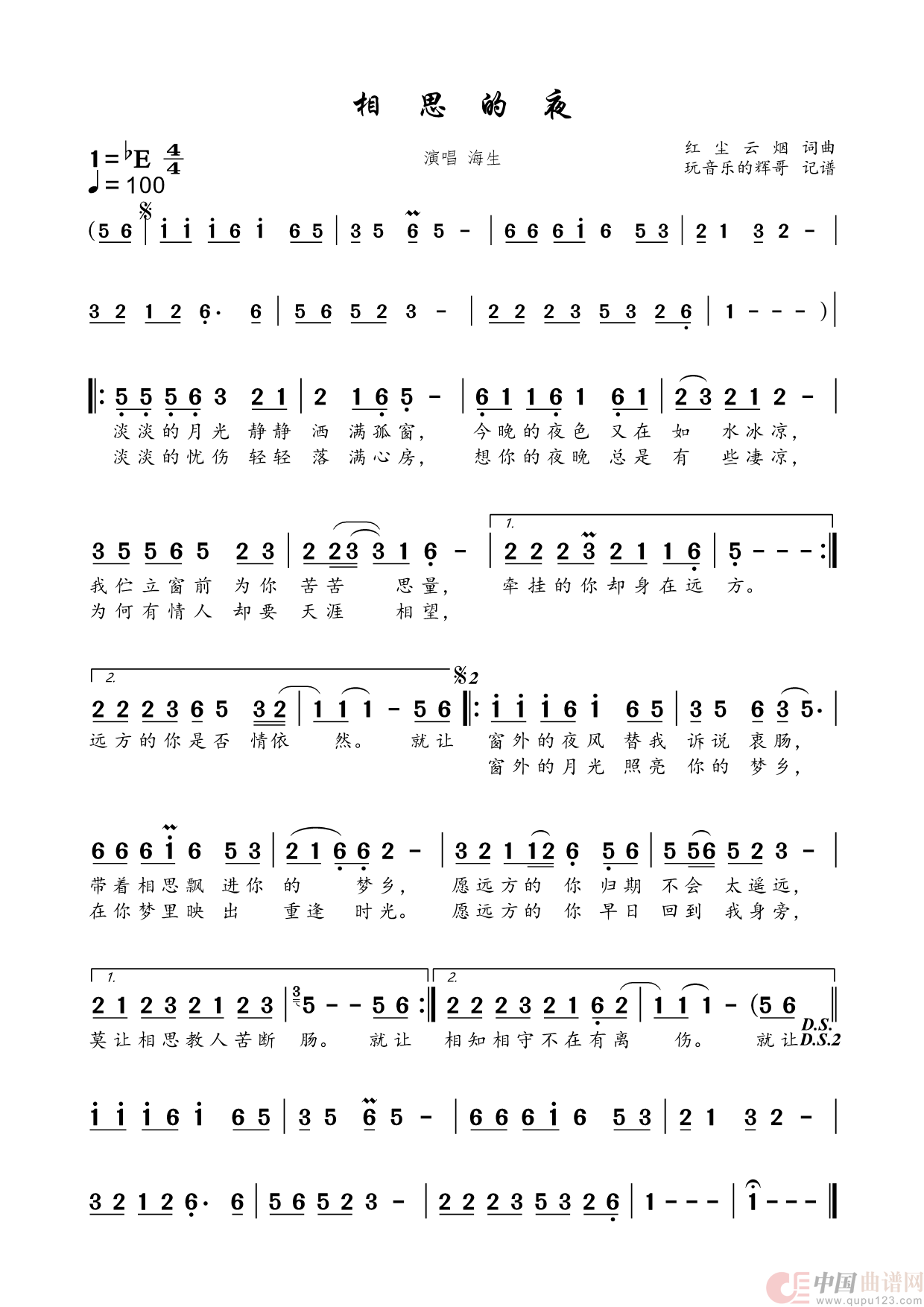 作词:作词 红尘云烟 作曲:作曲 红尘云烟 演唱(奏):演唱 海生 来源:根据海生演唱记谱 上传:玩音乐的辉哥