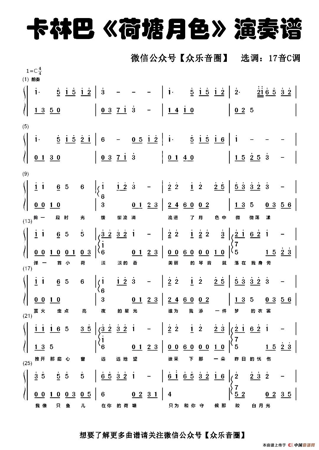 荷塘月色(拇指琴卡林巴琴和弦简谱)
