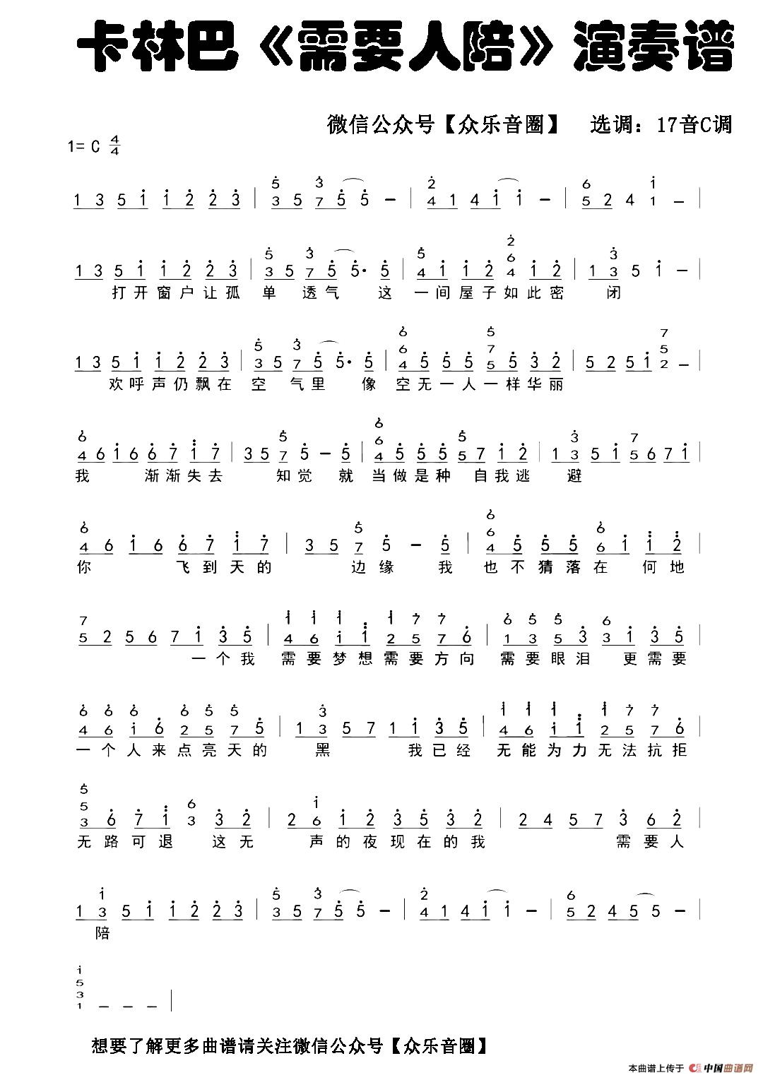 需要人陪(拇指琴卡林巴琴和弦简谱)