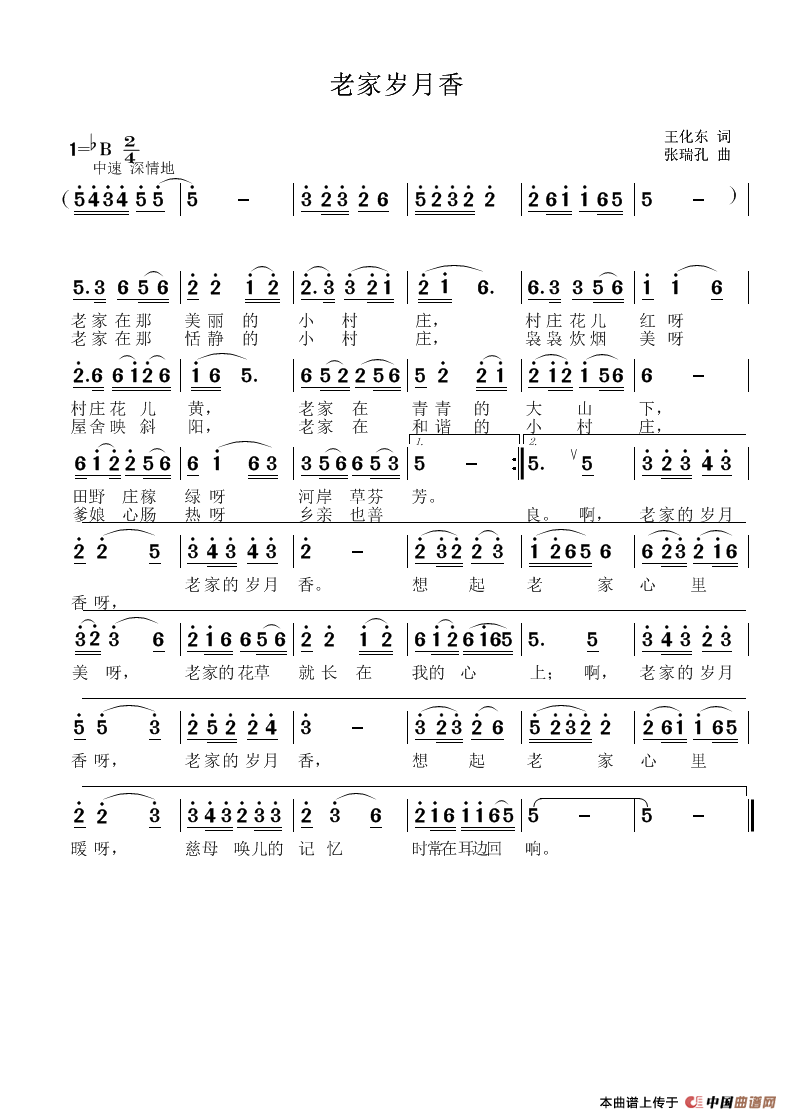 关于《老家岁月香》曲谱的评论