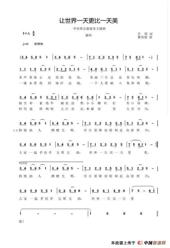 关于《让世界一天更比一天美》曲谱的评论