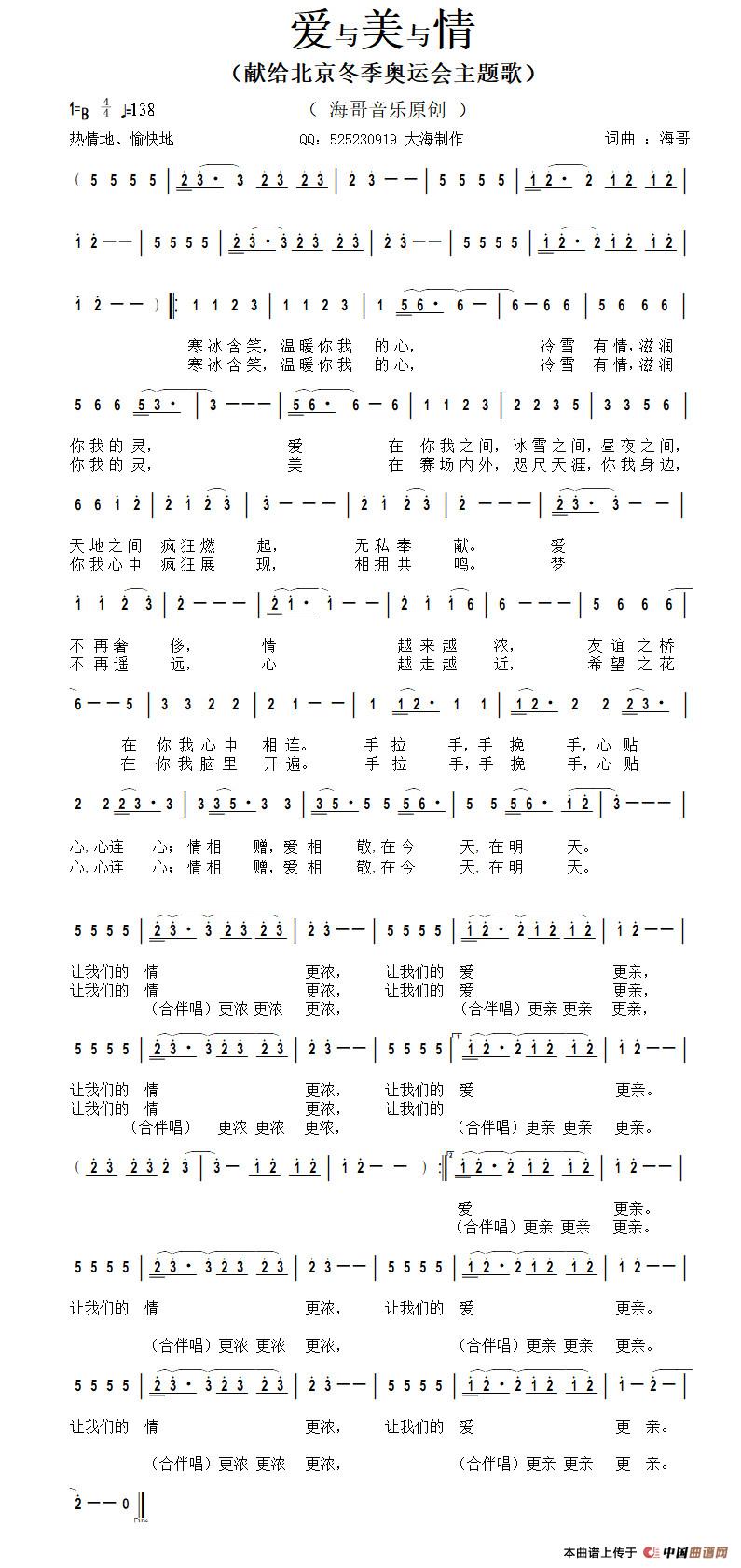 关于《爱与美与情》曲谱的评论
