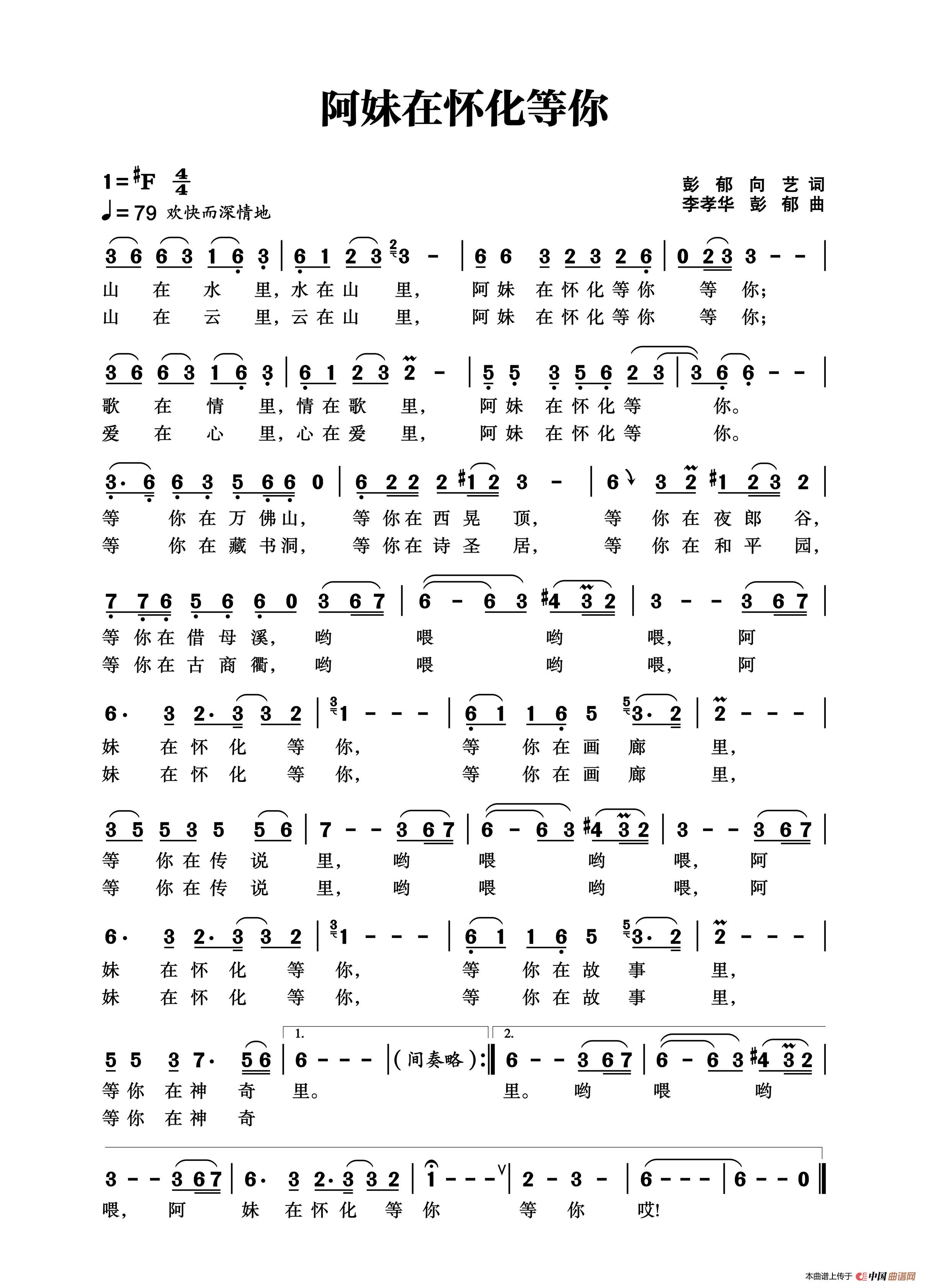 阿妹在怀化等你(彭郁 向艺词 李孝华 彭郁曲)