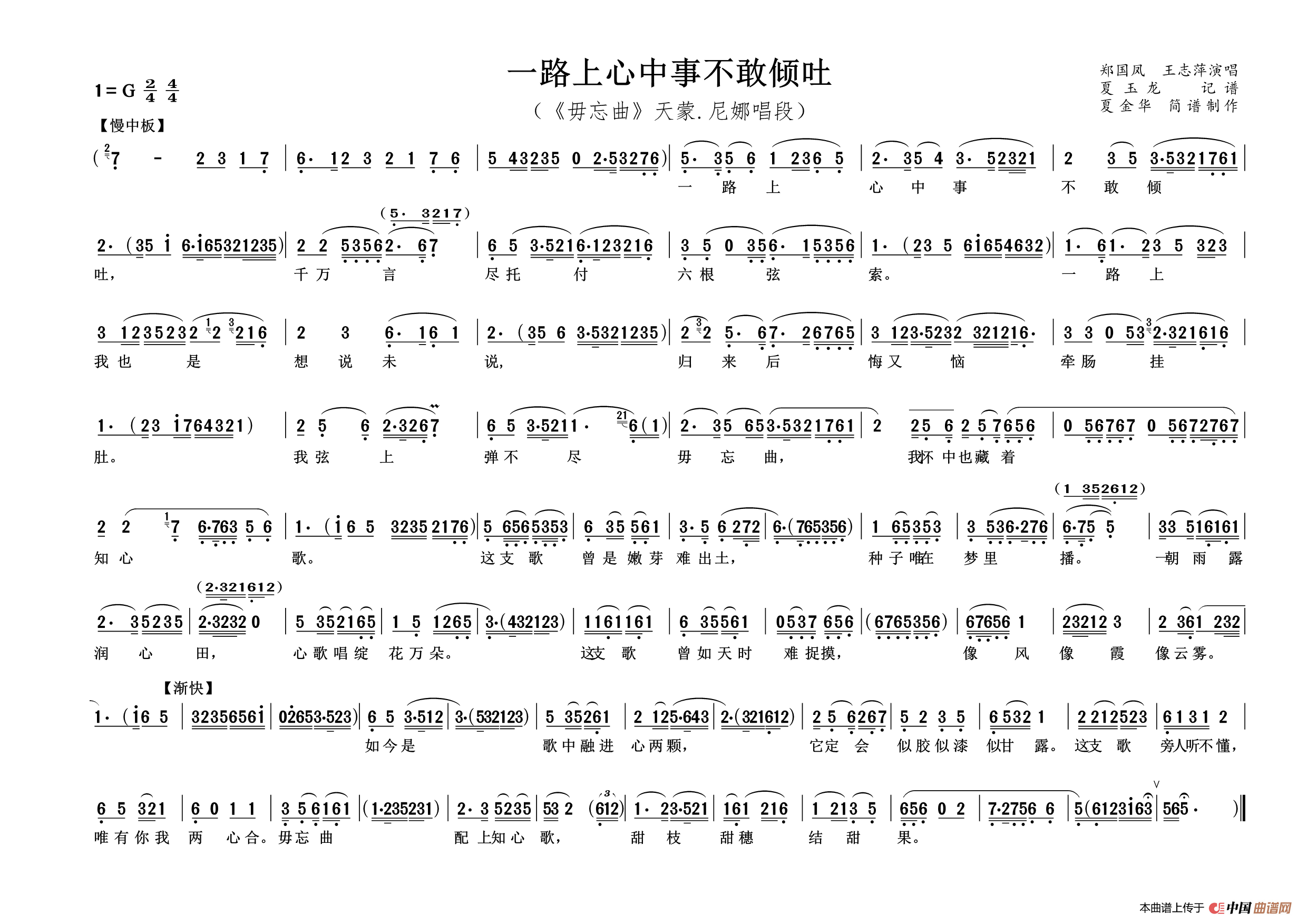 关于《一路上心中事不敢倾吐》曲谱的评论