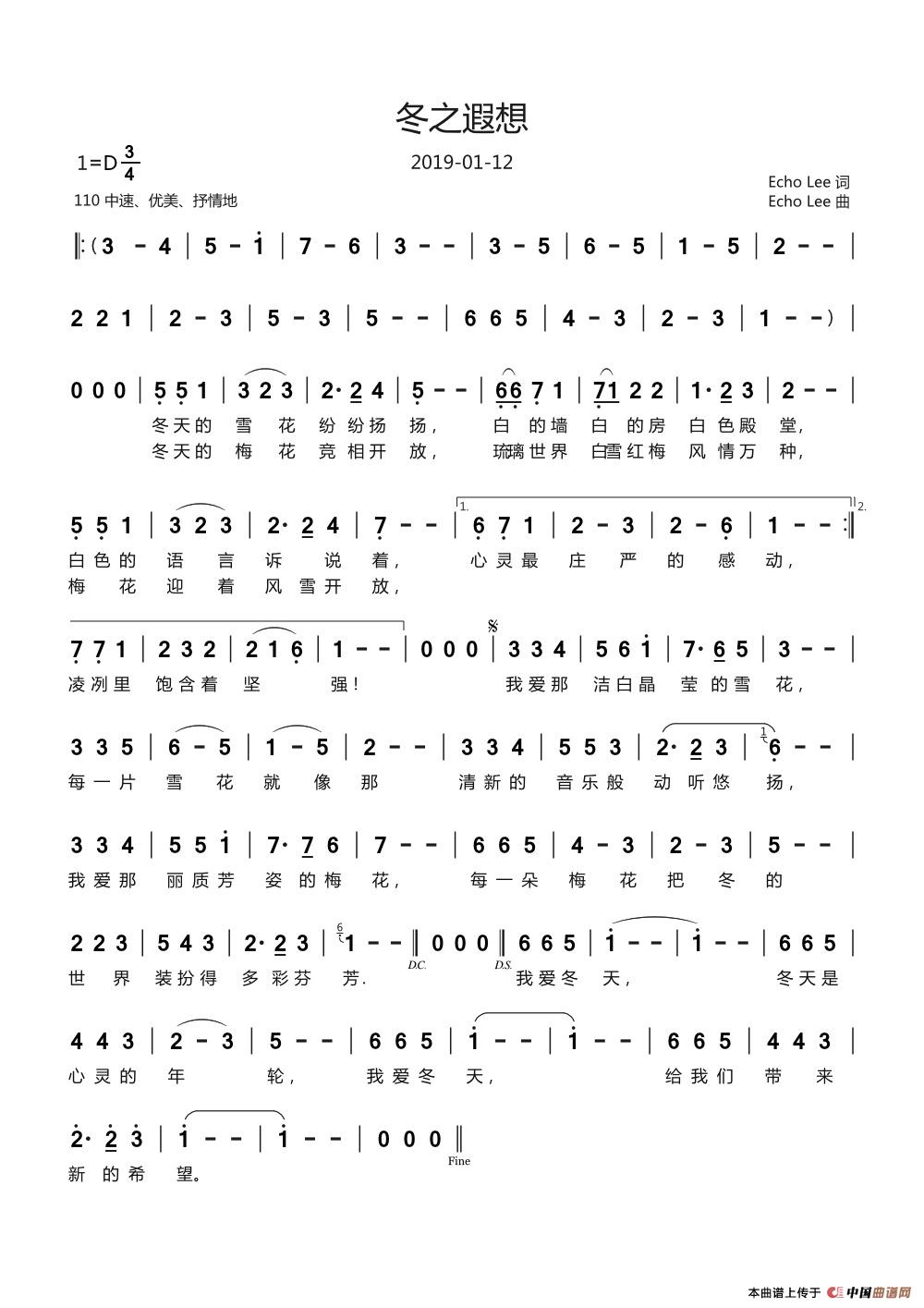 作词:Echo Lee   作曲:Echo Lee   来源:原创作品   上传:一门502   日期:2019-01-12   浏览次数:
