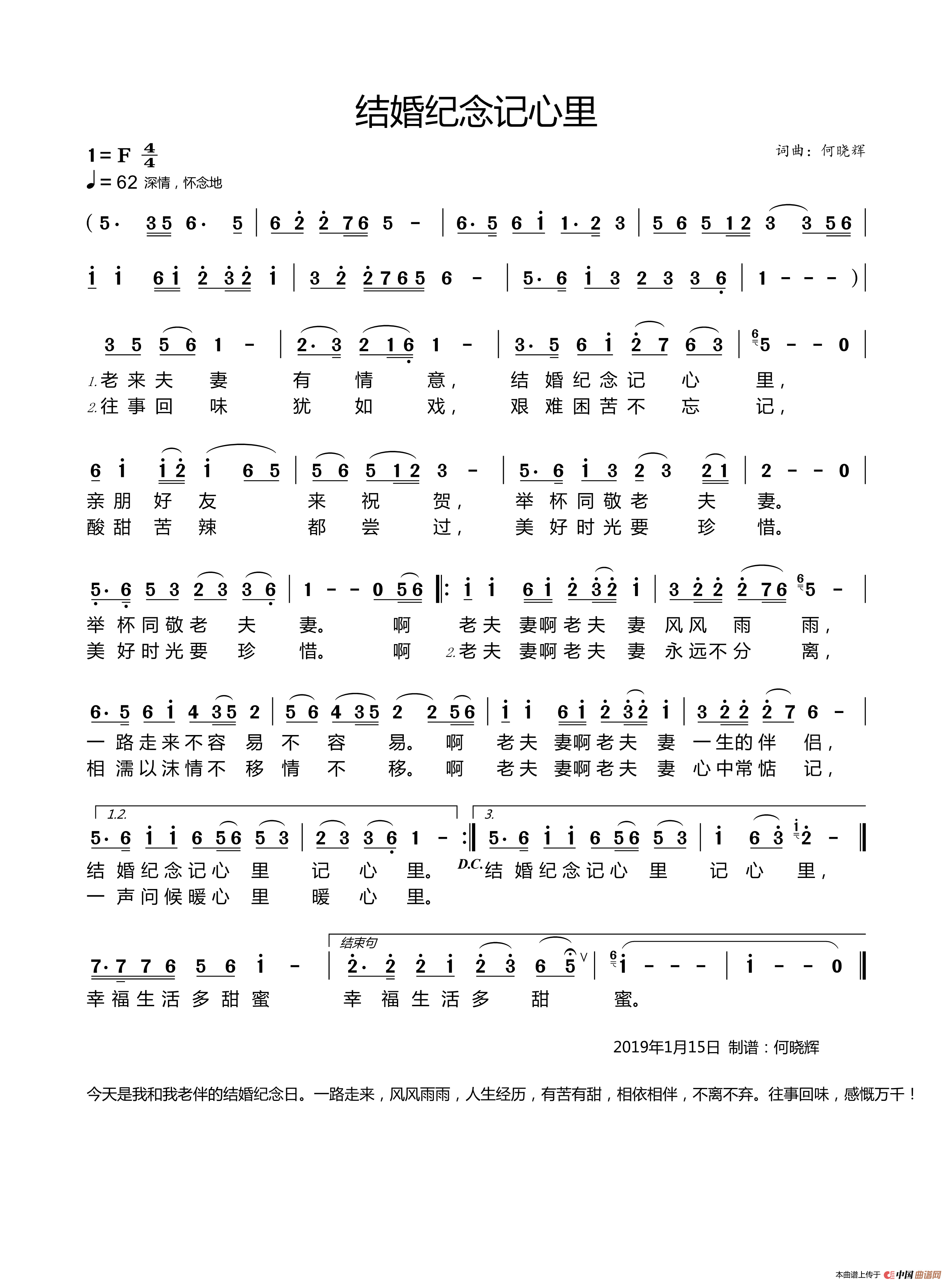 关于《结婚纪念记心里》曲谱的评论
