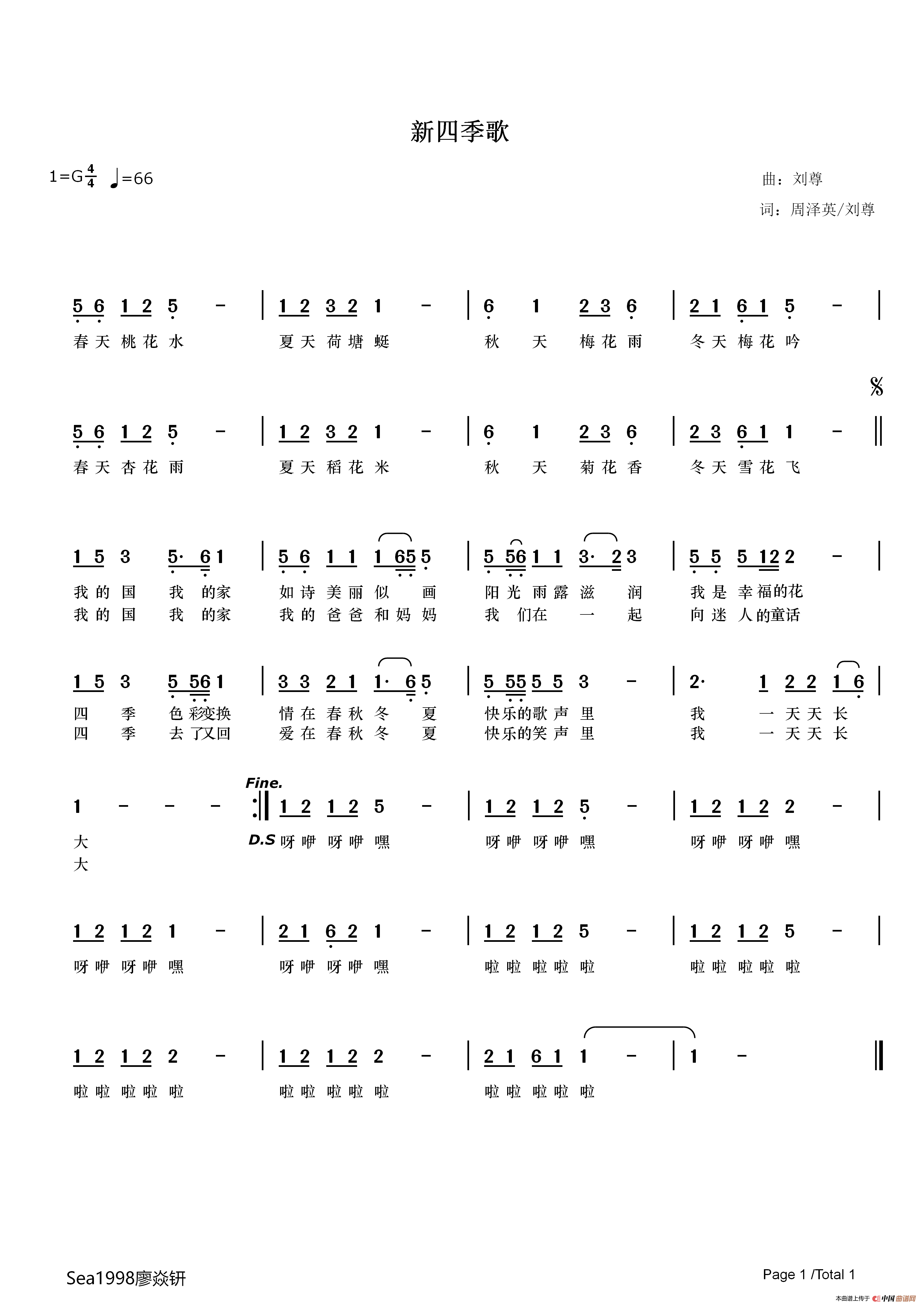 提示:在曲谱图片上单击右键,选择“图片另存为...”即可将曲谱保存到您的电脑中,打印时候可将图片插入到WORD中,调整合适大小打印即可。