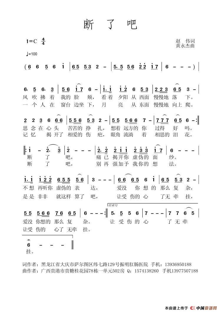关于《断了吧》曲谱的评论