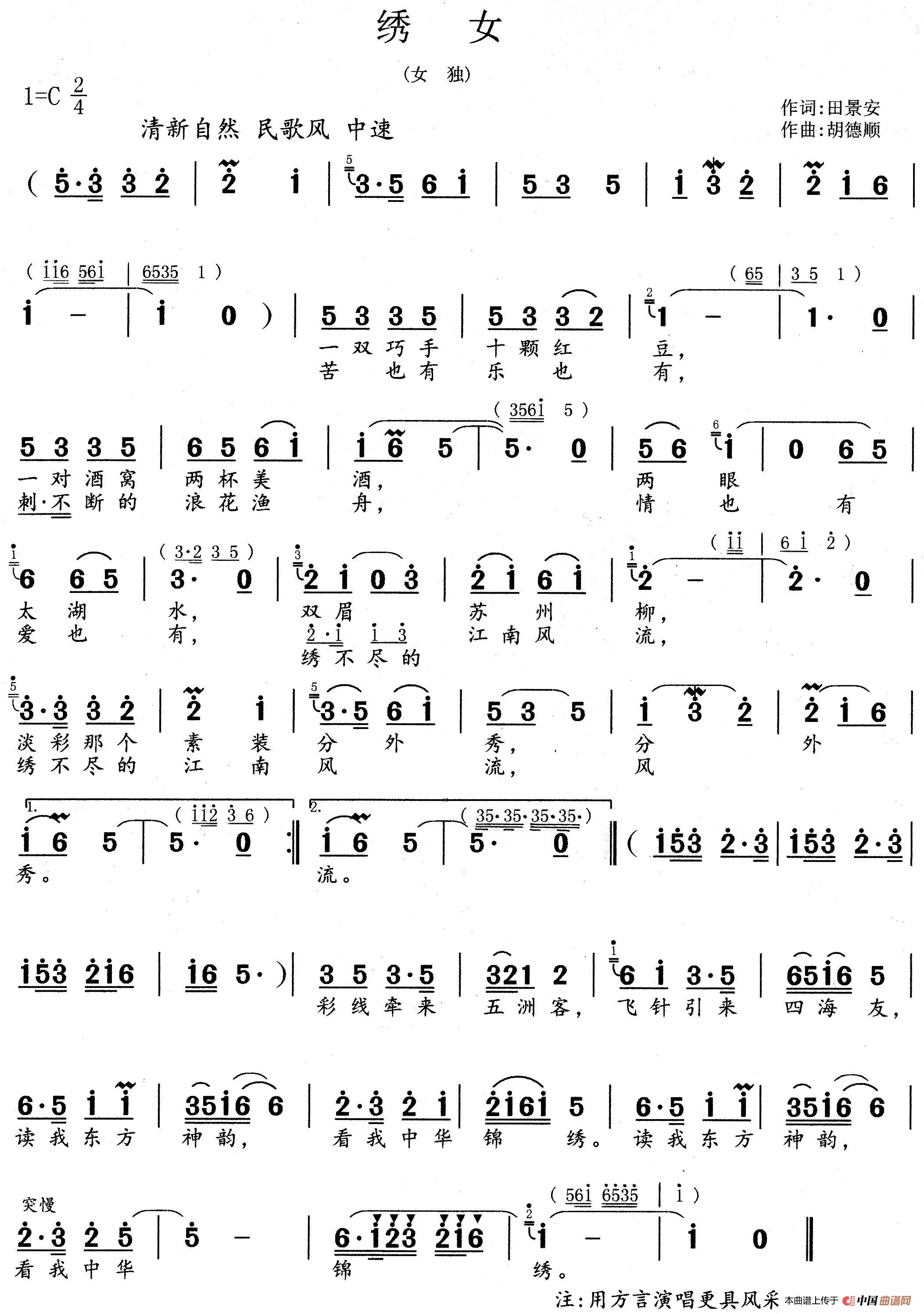 关于《绣女》曲谱的评论