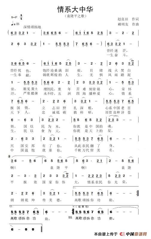 关于《袁隆平之歌》曲谱的评论