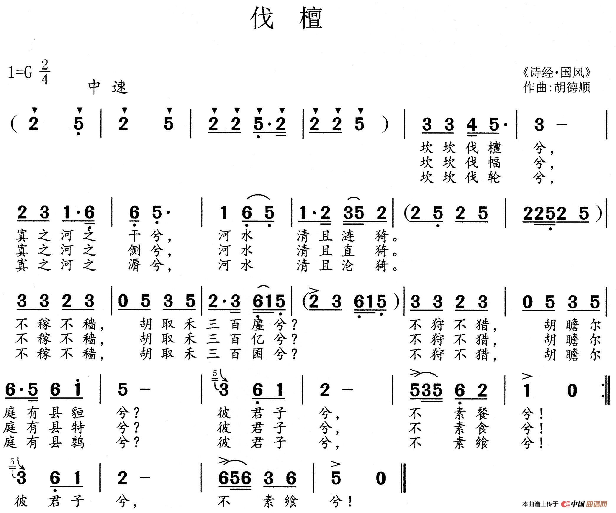 关于《伐檀》曲谱的评论
