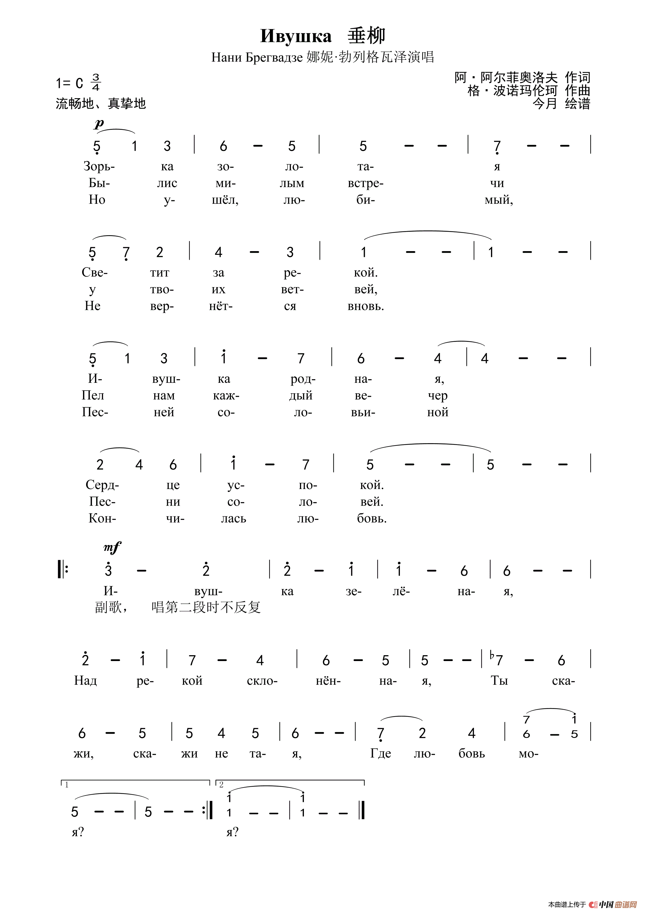 关于《垂柳》曲谱的评论