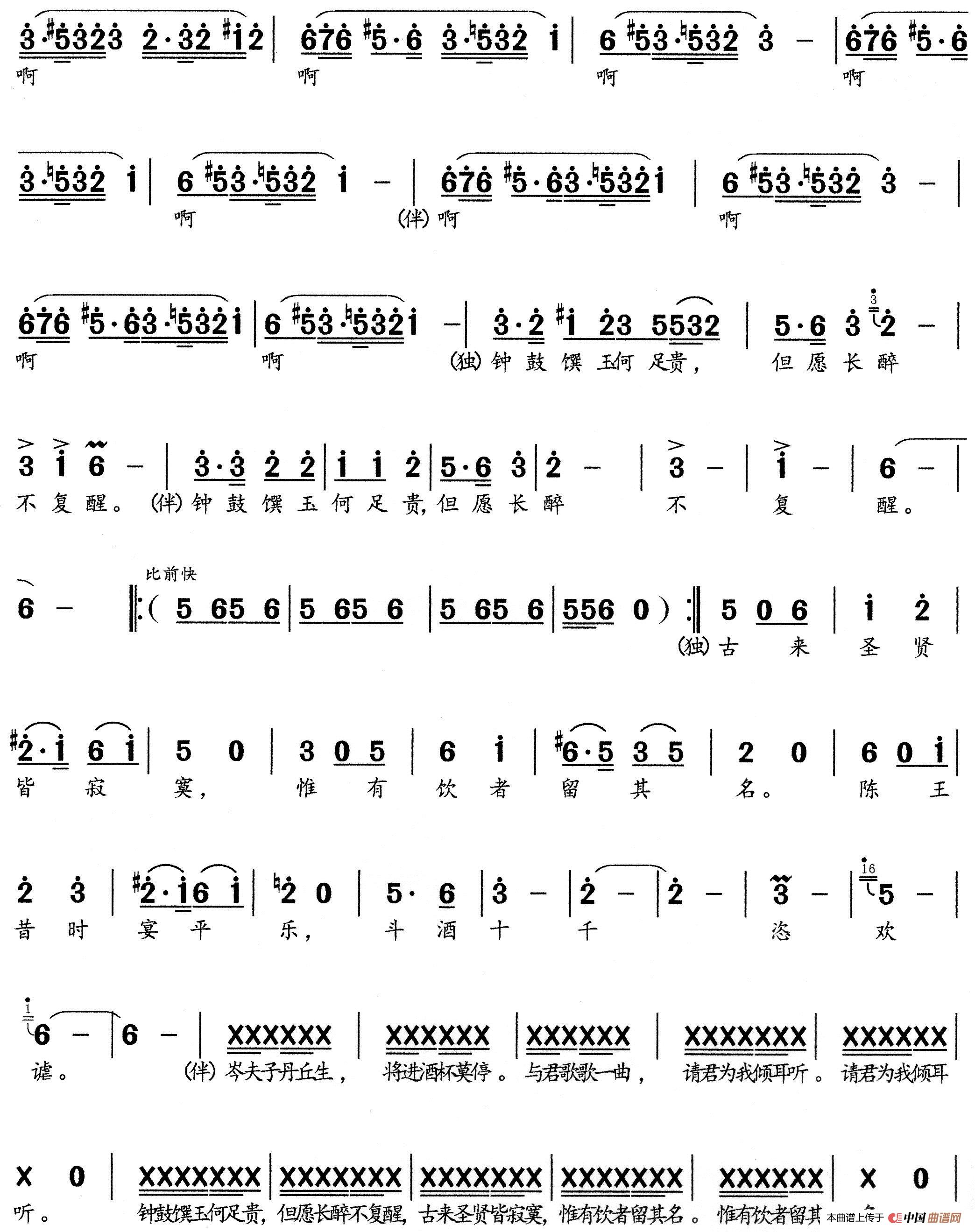 提示:在曲谱图片上单击右键,选择“图片另存为...”即可将曲谱保存到您的电脑中,打印时候可将图片插入到WORD中,调整合适大小打印即可。