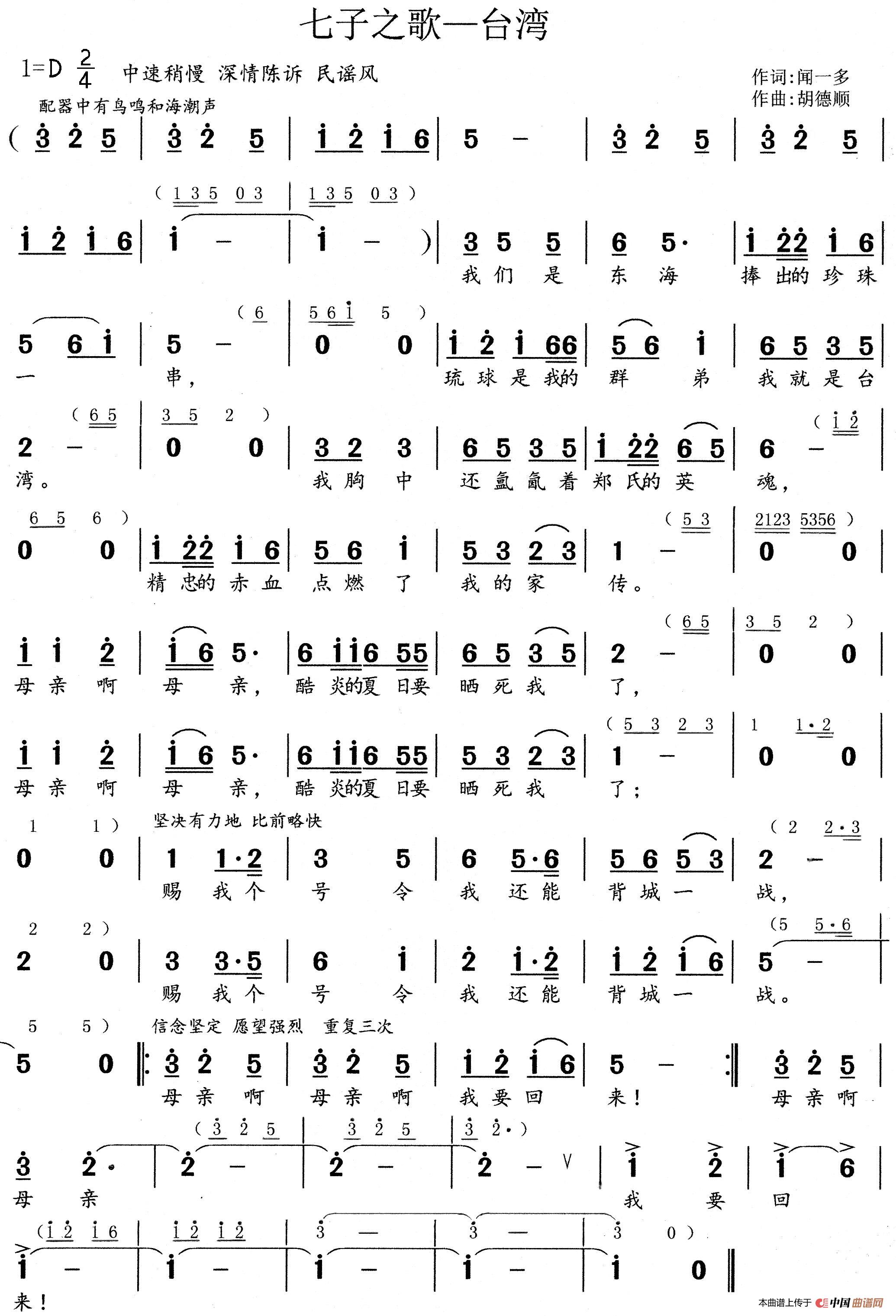 关于《七子之歌-台湾》曲谱的评论