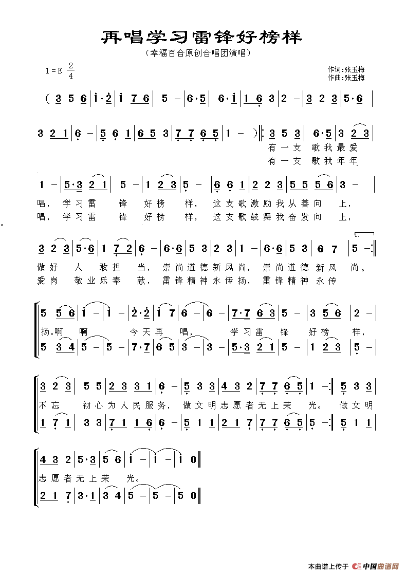 关于《再唱学习雷锋好榜样(合唱)》曲谱的评论