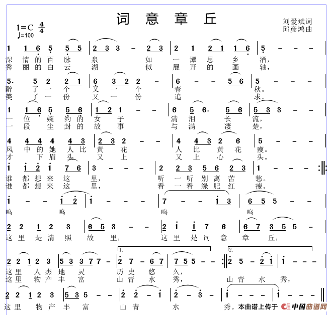 关于《词意章丘》曲谱的评论