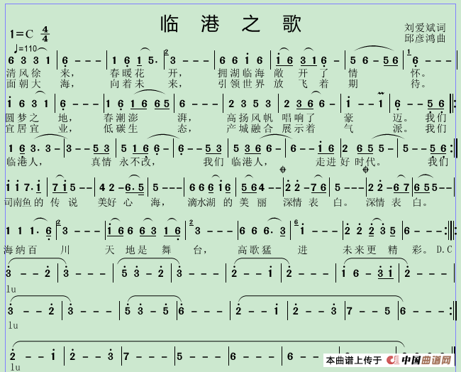 关于《临港之歌》曲谱的评论