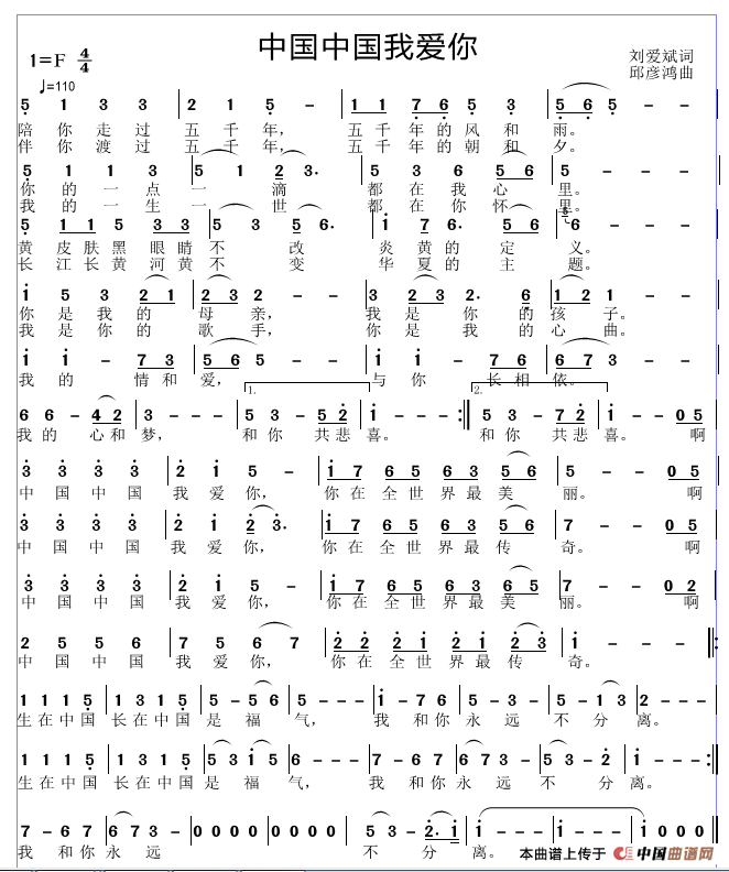 当前位置: 首页 谱友园地 谱友上传 中国中国我爱你