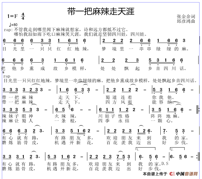 关于《带一把麻辣走天涯》曲谱的评论