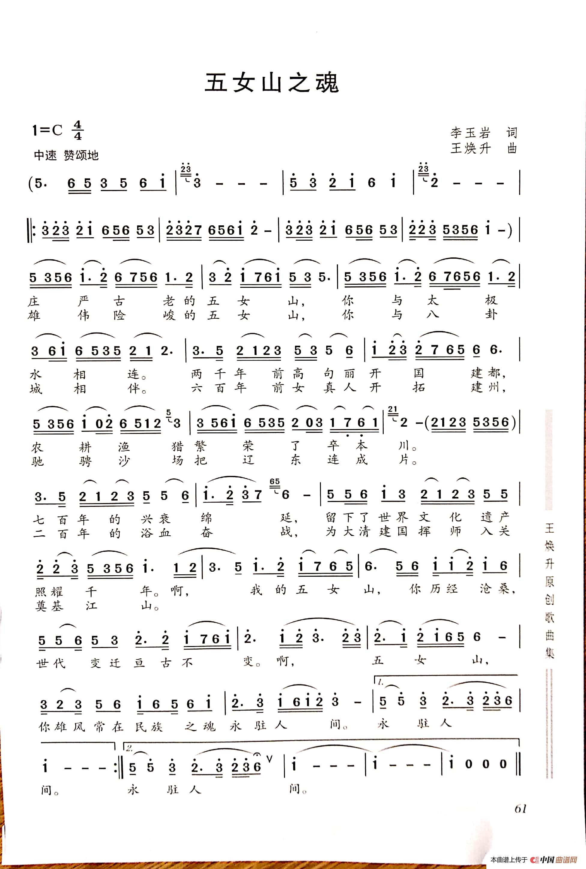 关于《五女山之魂》曲谱的评论