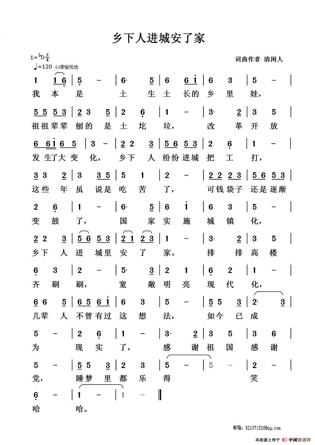 我本是土生土长的乡里娃,祖祖辈辈刨的是土圪垃,改革开放发生了大变化,乡下人纷纷进城把工打,这些年虽说是吃苦了,可钱袋子还是逐渐变鼓了,国家实施城镇化,乡下人进城里安了家。排排高楼齐刷刷,宽敞明亮现代化,几辈人不曾有过这想法,如今已成为现实了,感谢祖国感谢党,睡梦里都乐得笑哈哈。