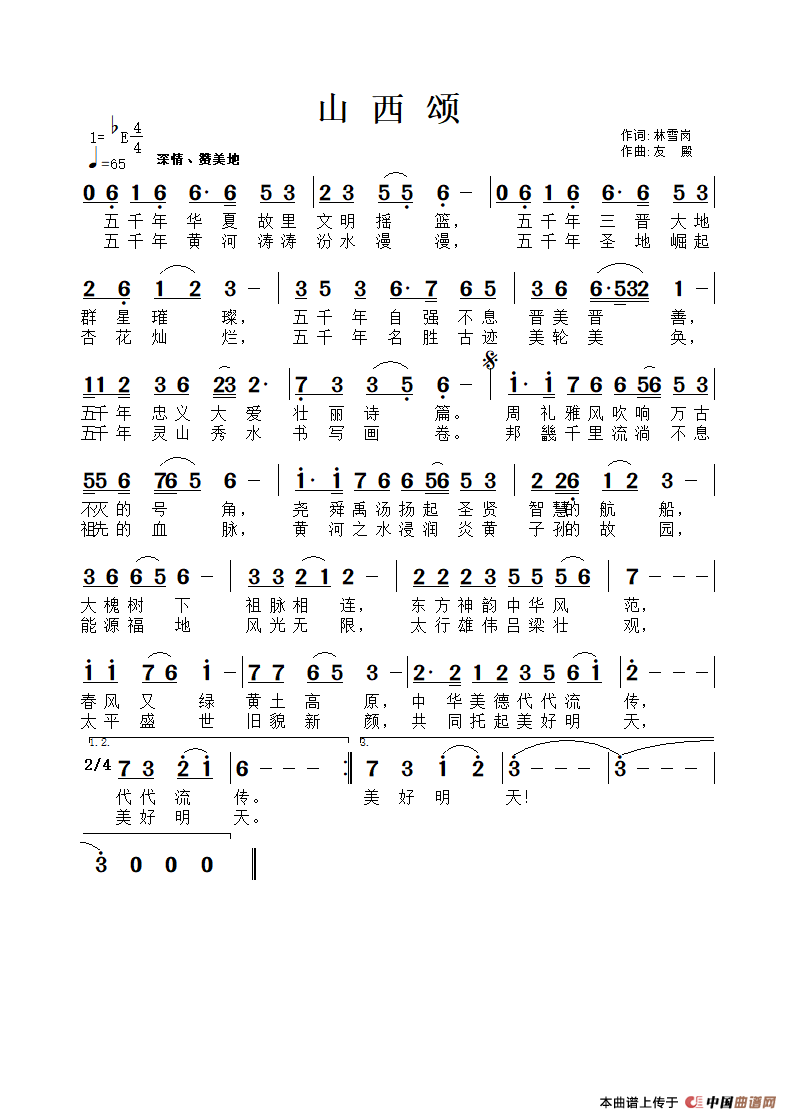 《《山西颂》最终曲谱》文本歌词