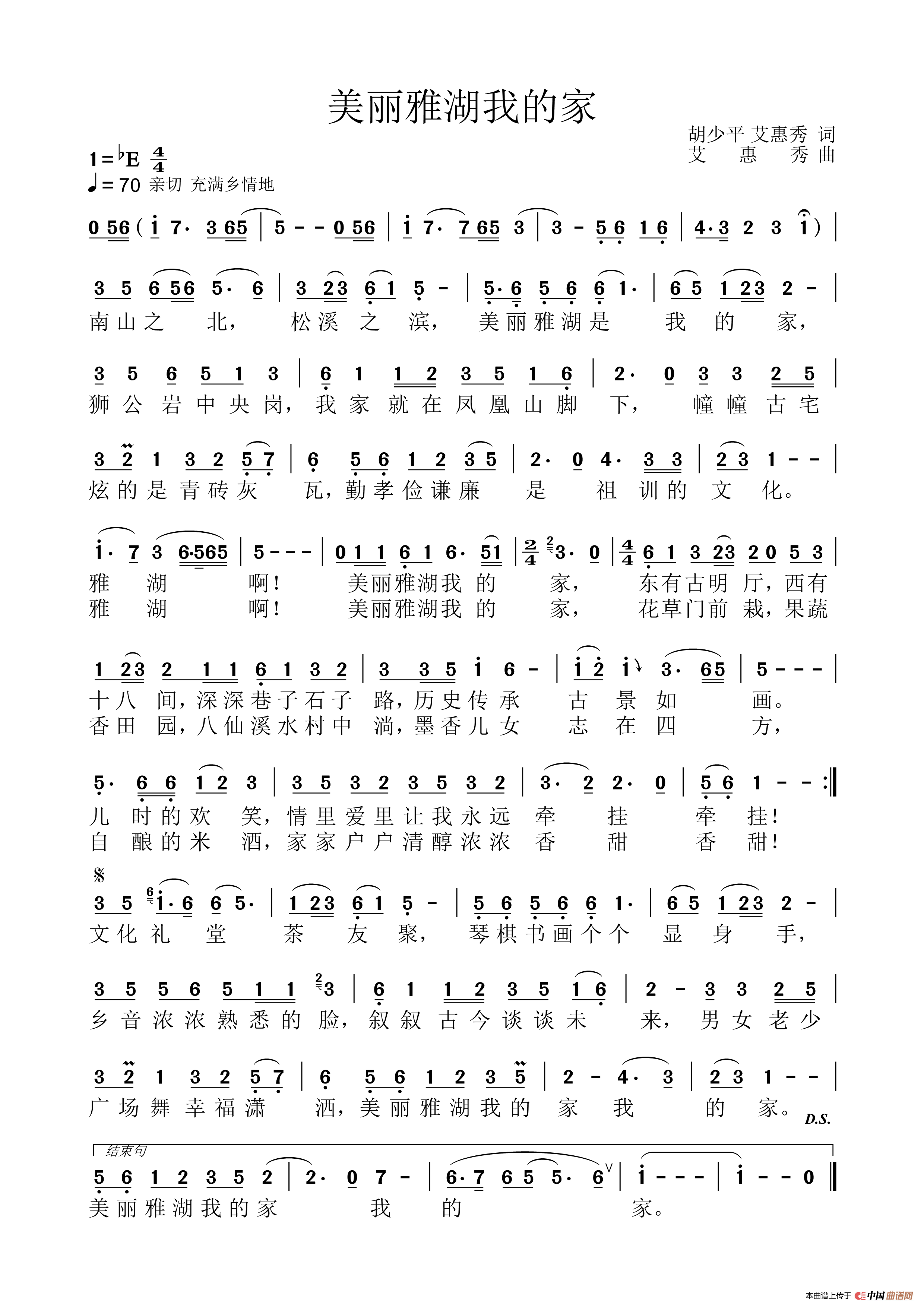 关于《美丽雅湖我的家》曲谱的评论
