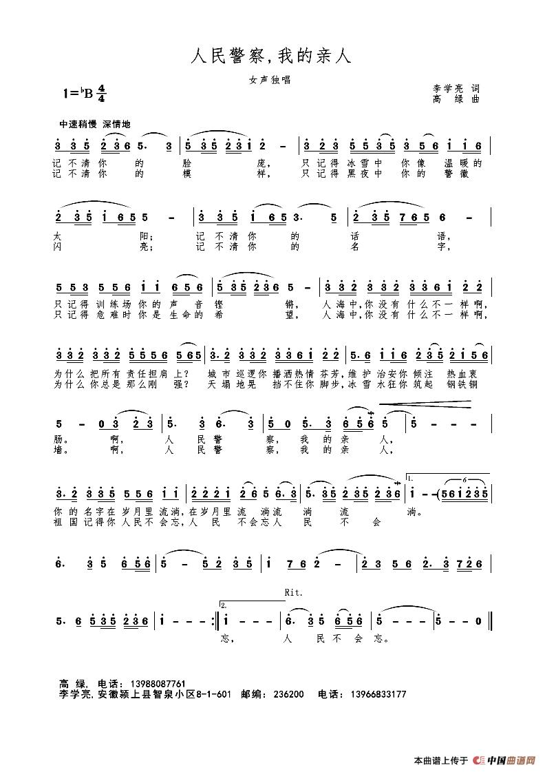 关于《MV 人民警察,我的亲人》曲谱的评论