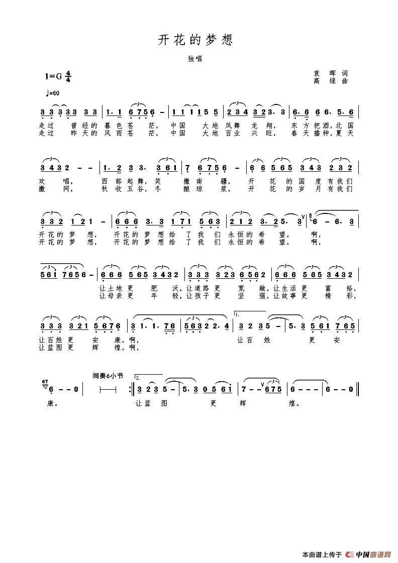 关于《MV 开花的梦想》曲谱的评论