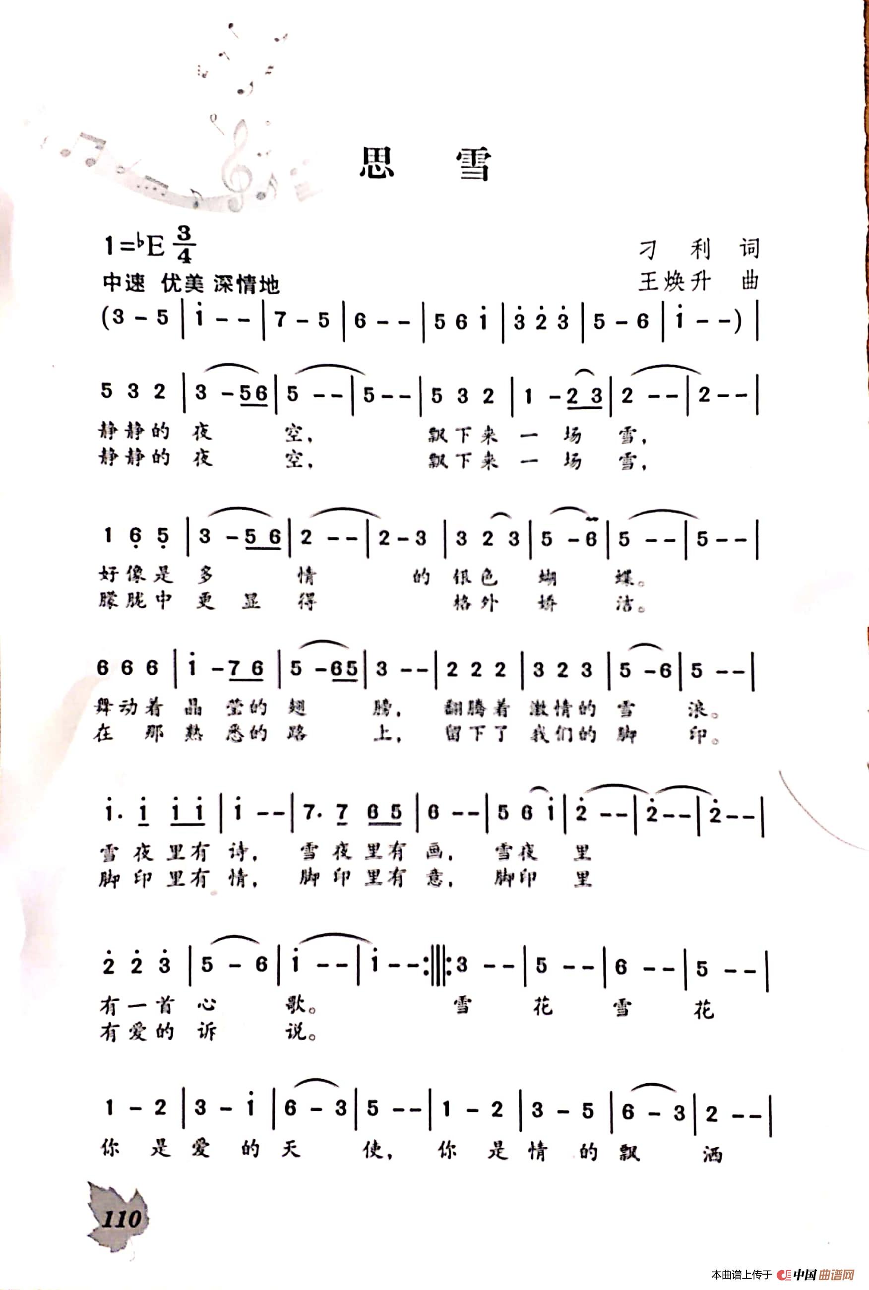 关于《思雪》曲谱的评论