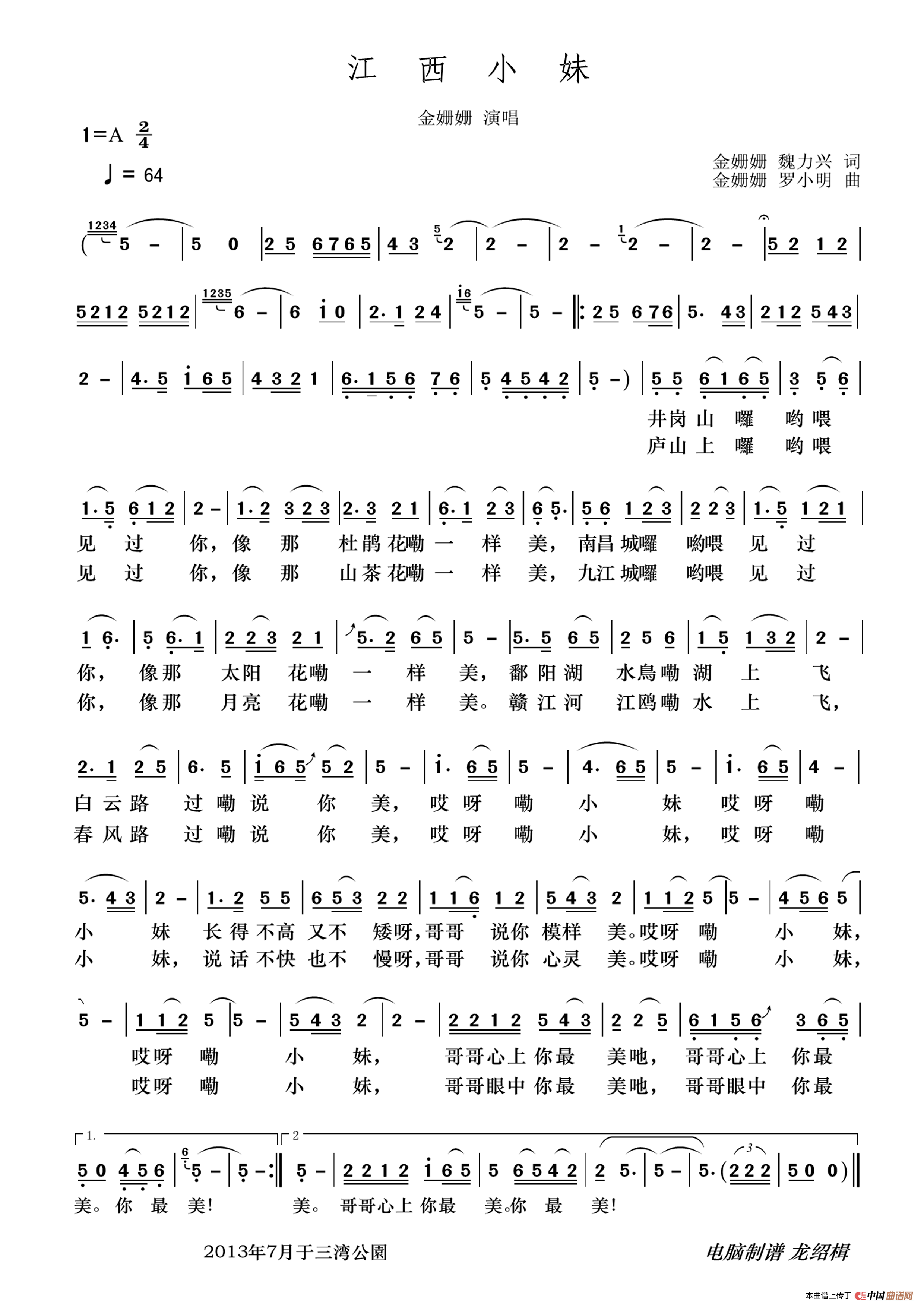关于《江西小妹》曲谱的评论
