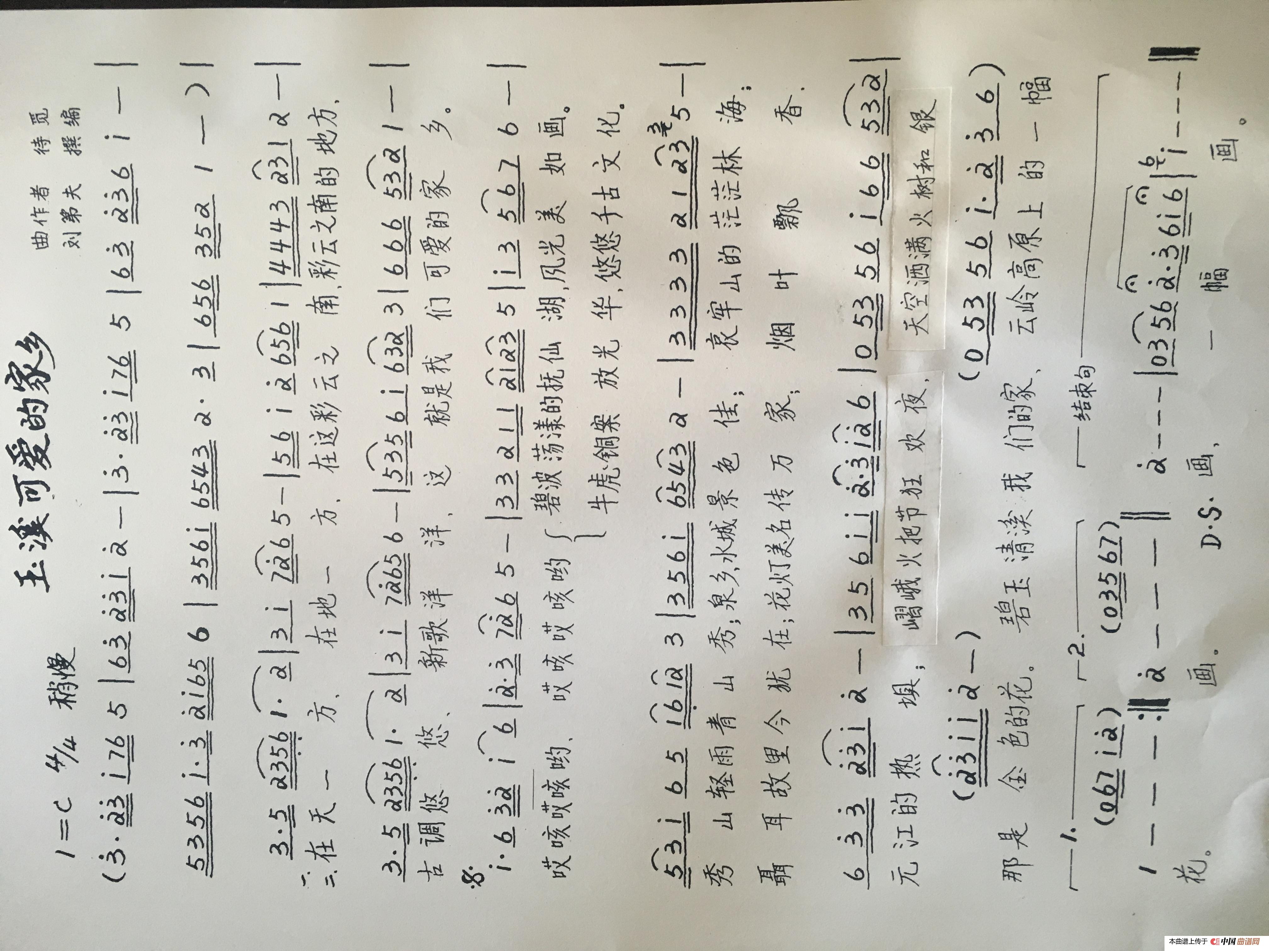 关于《玉溪可爱的家乡》曲谱的评论