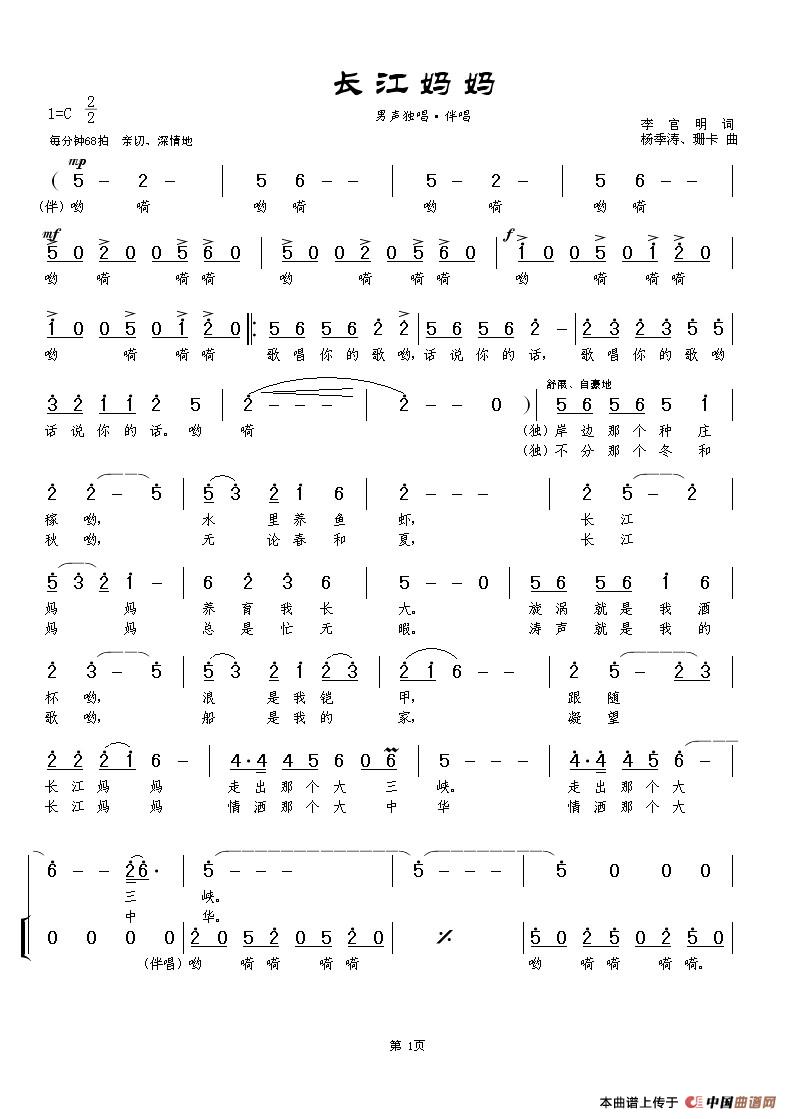 提示:在曲谱图片上单击右键,选择“图片另存为...”即可将曲谱保存到您的电脑中,打印时候可将图片插入到WORD中,调整合适大小打印即可。
