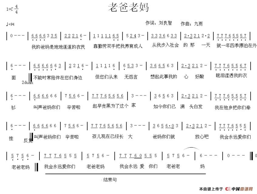 关于《老爸老妈》曲谱的评论