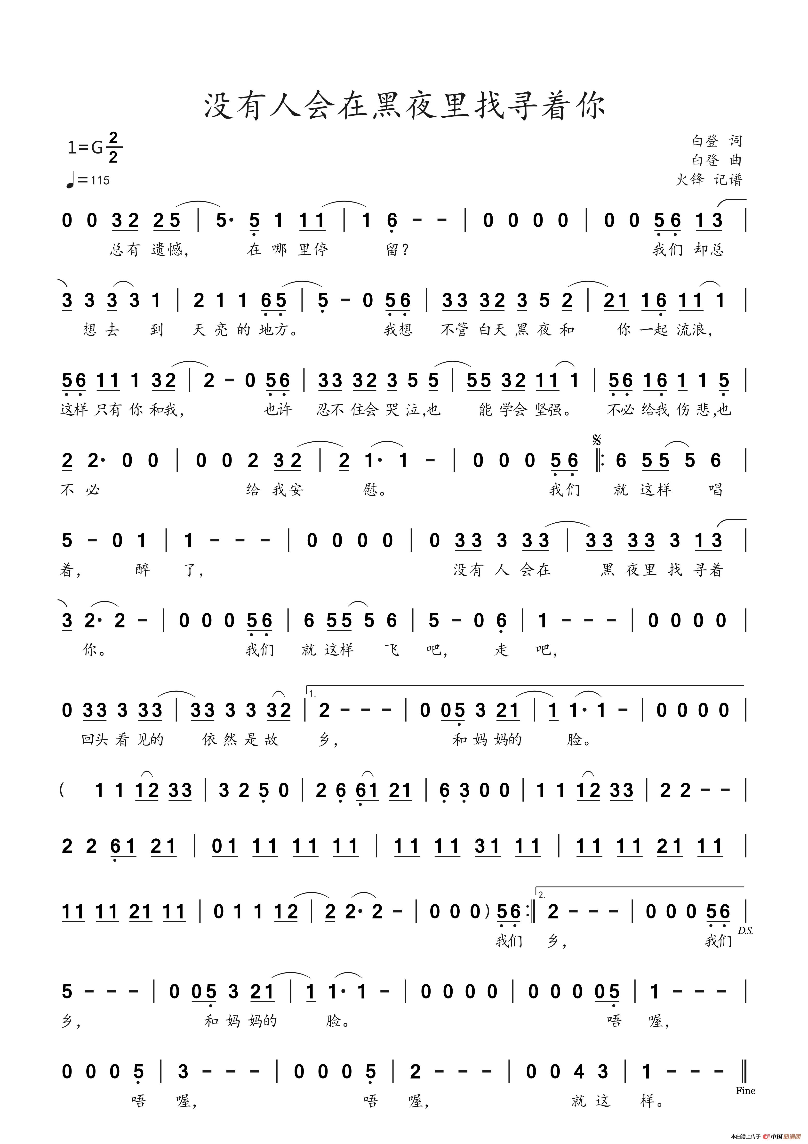 关于《没有人会在黑夜里找寻着你》曲谱的评论