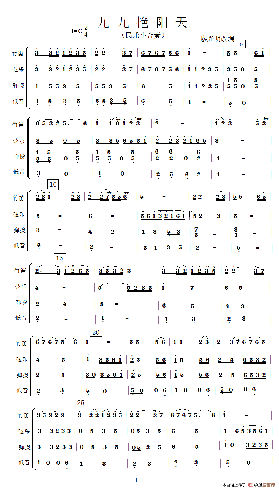 作曲:廖光明改编 来源:根据电影插曲九九艳阳天改编 上传:廖光明