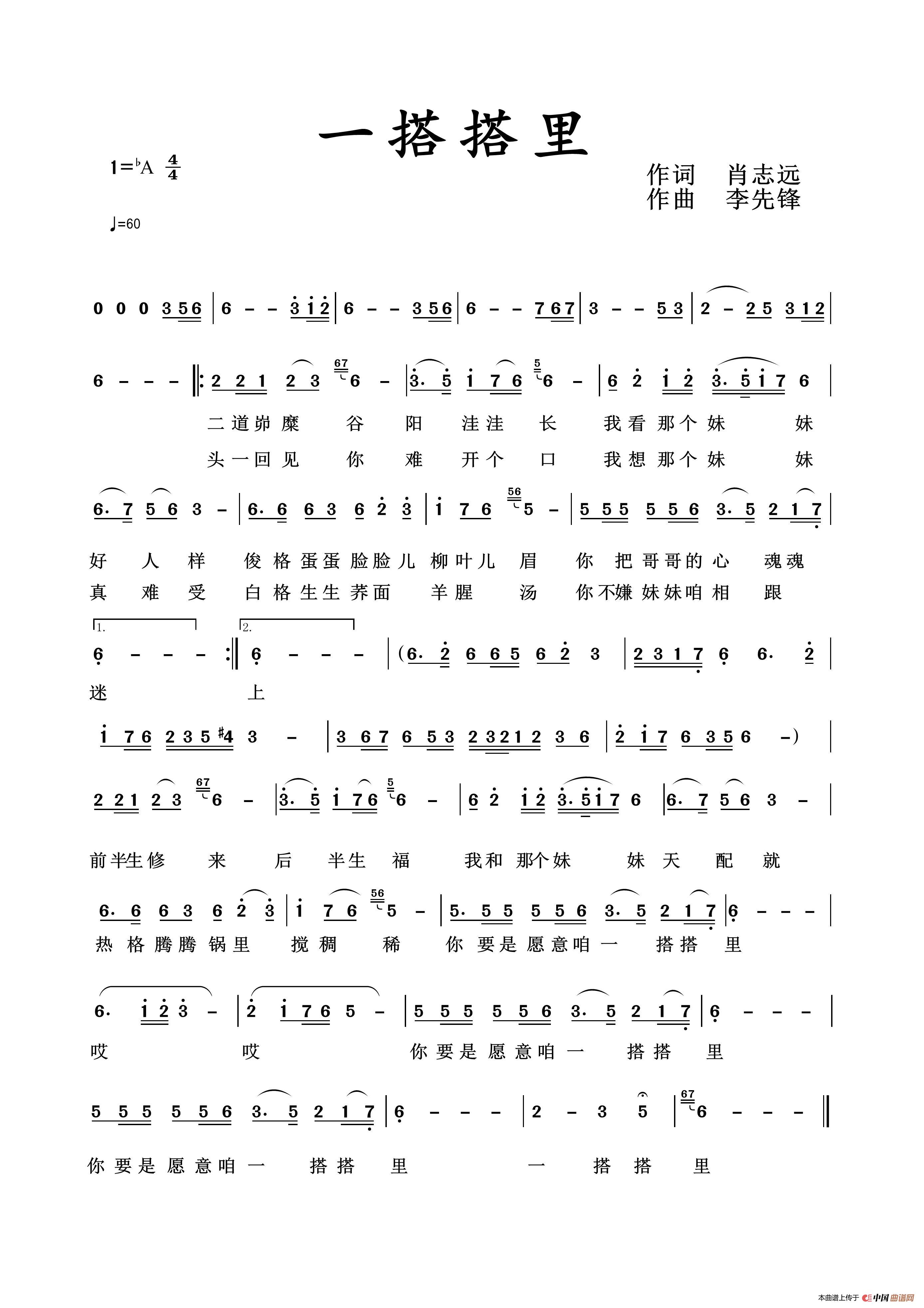 关于《一搭搭里》曲谱的评论