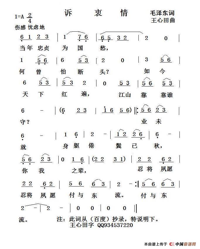 关于《诉衷情》曲谱的评论
