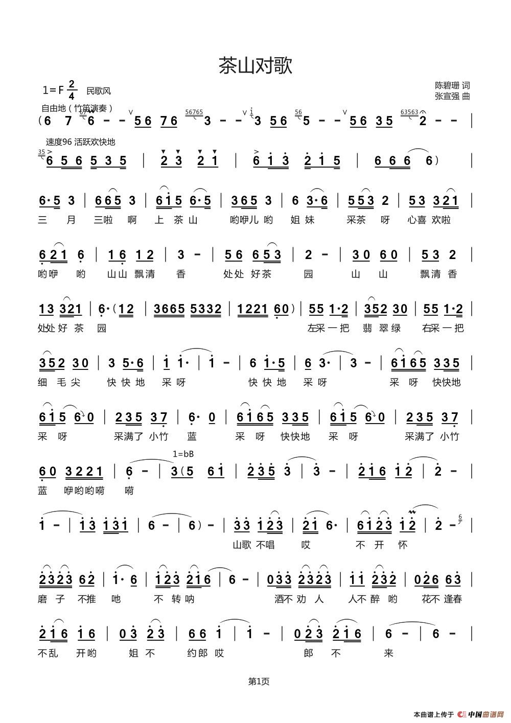 关于《茶山对歌》曲谱的评论