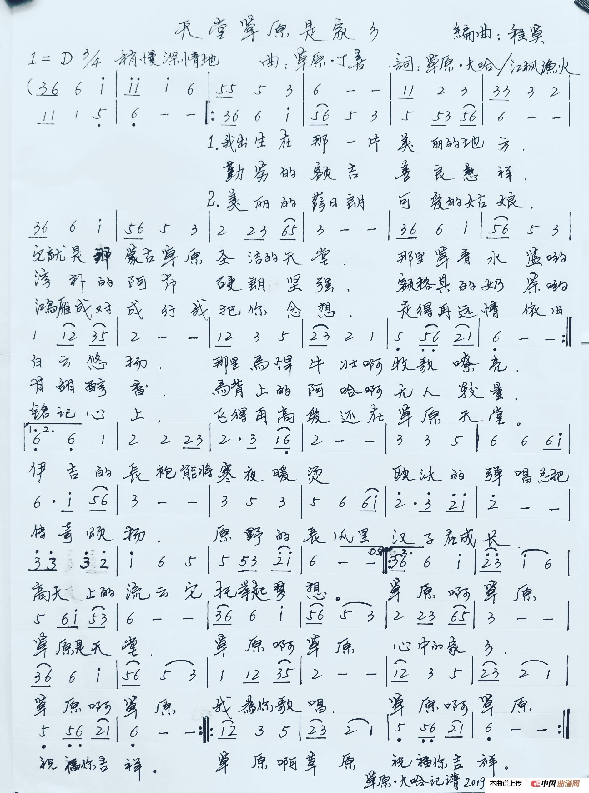 天堂草原是家乡 1=D3/4 稍慢深情地 曲: 草原丁喜 词: 草原大哈/江枫渔火