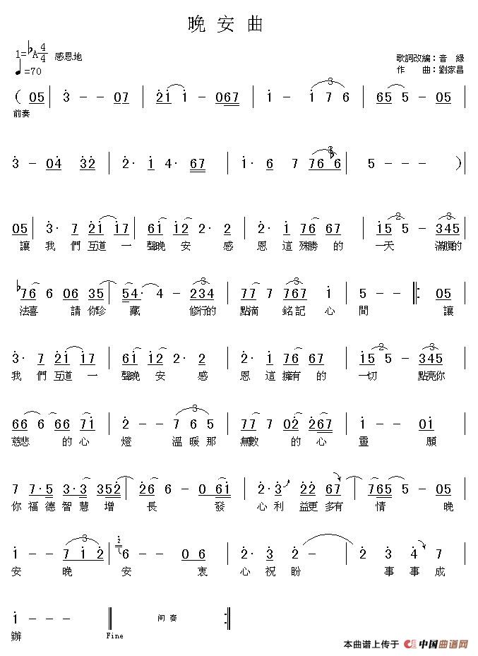 《晚安曲》文本歌词